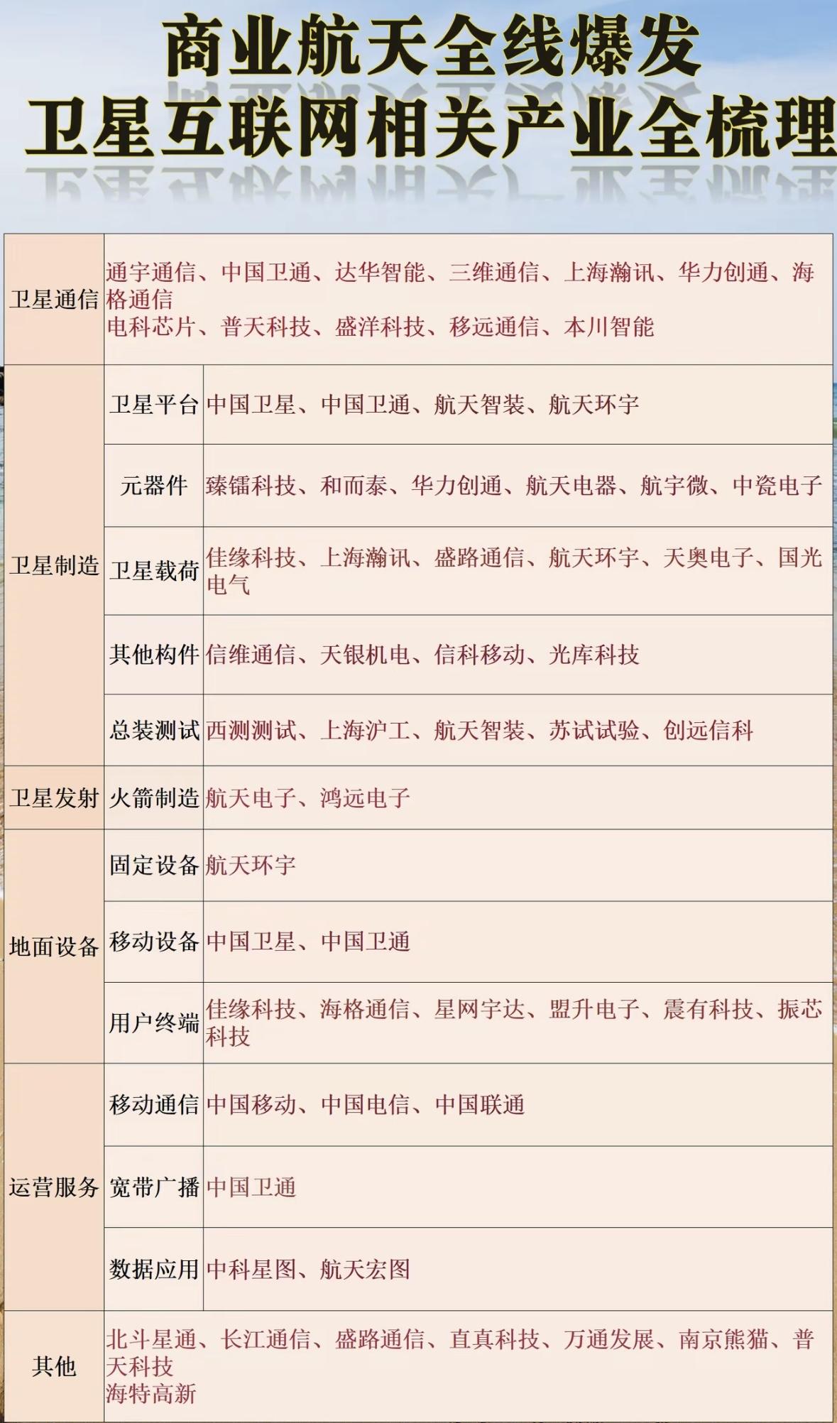 商业航天全产业链解析,一图看懂卫星互联网生态! 商业航天产业链爆发,覆盖卫星制造、发射、通信及运营服务,多企业布局,推动卫星互联网全面发展。
