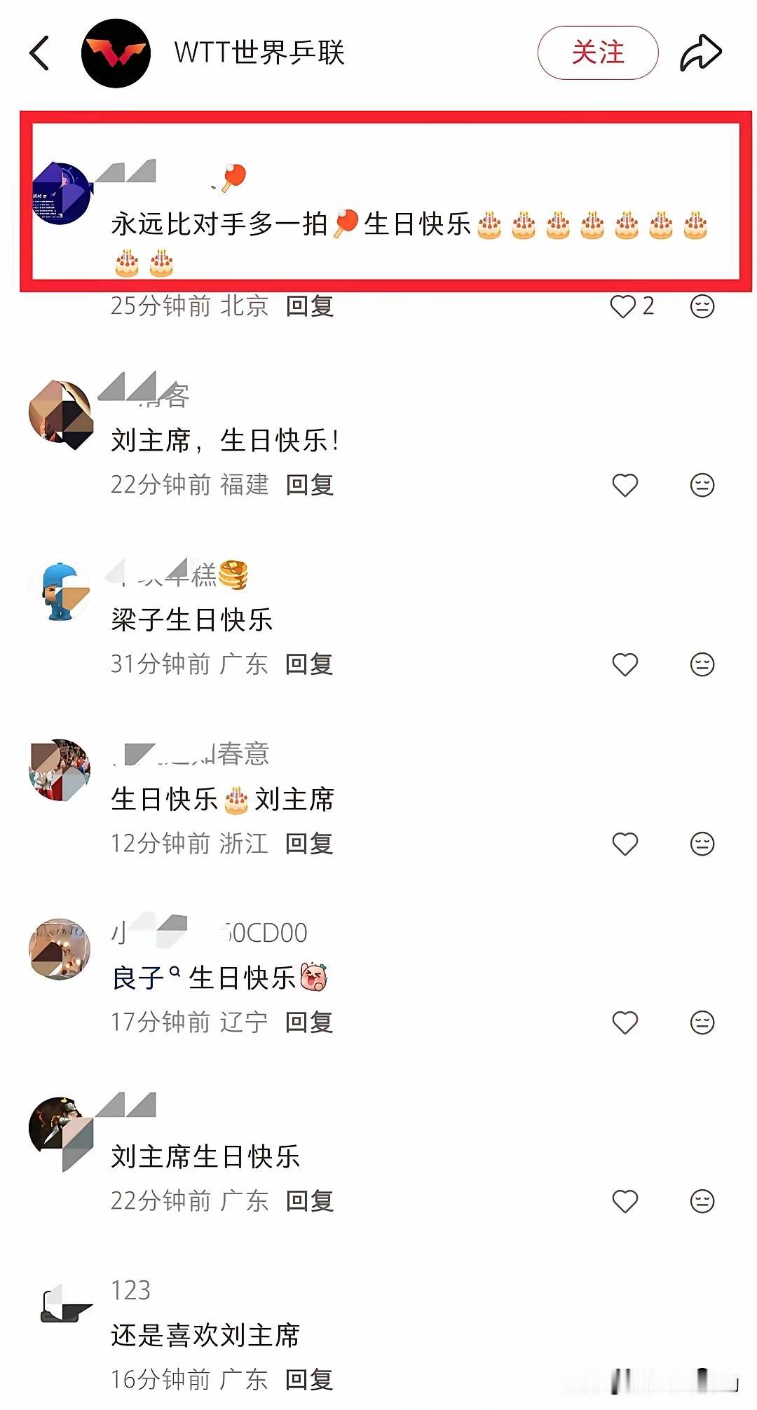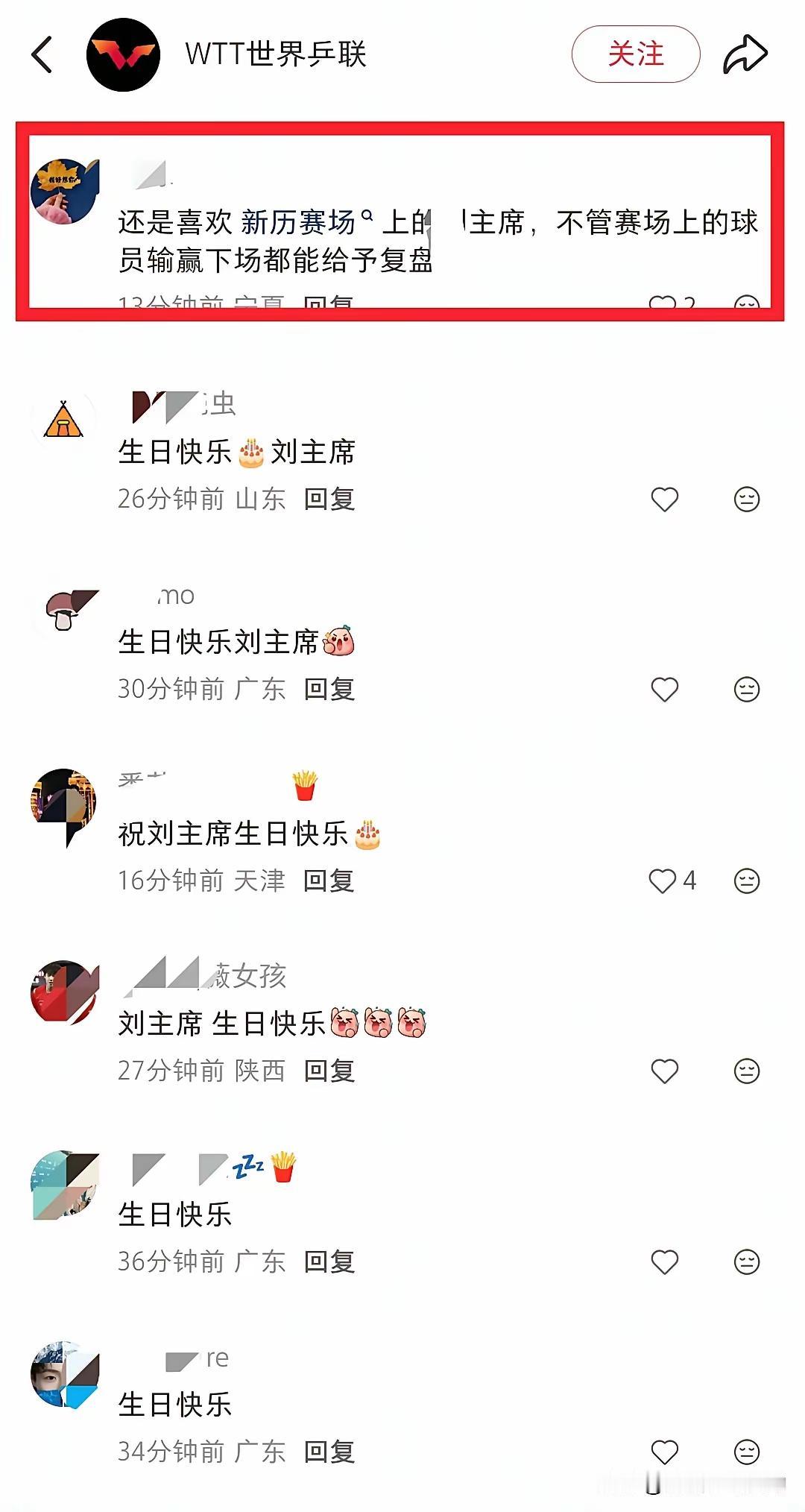 WTT发文祝刘国梁先生生日快乐! 今天WTT发文,祝世界乒联董事会主席、国际乒联第一副主席刘国梁生日快乐。 刘国梁先生在担任中国乒协主席期间,既有人拍手叫好,也有人跺脚痛骂,备受争议。不过,WTT发文祝刘国梁生日快乐后,评论区祝他生日快乐的网友非常多,并且认为他是一个干实事的人。要笔者说呀,千秋功罪自由后人评说,这里也祝刘国梁先生生日快乐!