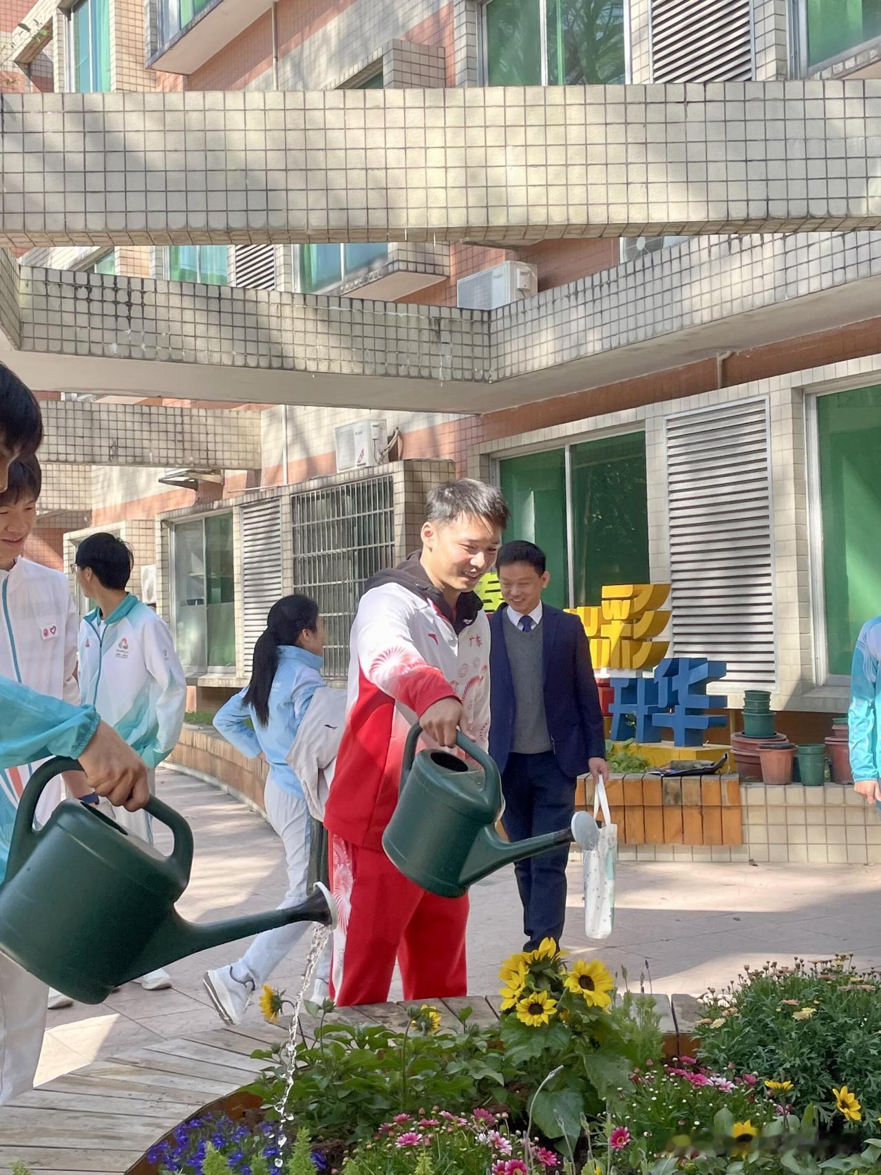 1月10日,陈艾森受邀到广州华南农业大学参加“青春当燃,志愿有我”主题座谈会。 他身穿广东队运动服,内搭红色T恤,看上去还是这么帅。 座谈会前,陈艾森与该校的学子们一起种下两株山茶花。 华南农业大学还聘请陈艾森担任“体教融合”特约辅导员,以后我们就可以多在大学校园看到陈艾森的身影了,希望他继续给我们带来更多正能量。