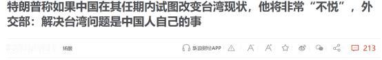 特朗普终于承认!2026年1月9日,特朗普就台湾问题再次表达!外交部:解决台湾问