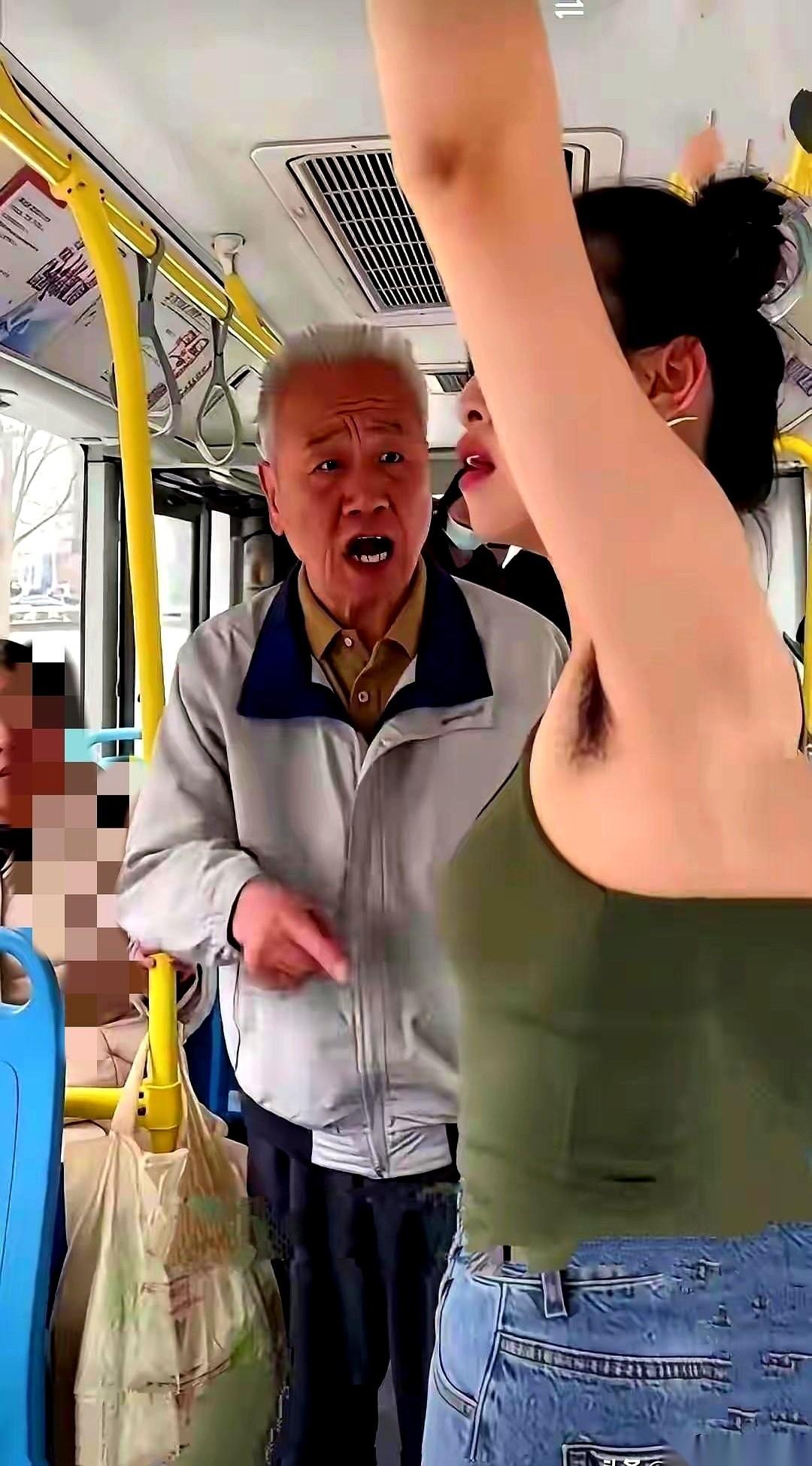 公交车猛地一刹。 一个穿T恤的姑娘,下意识抬手去抓头顶的扶手。 就这个动作,旁边座位上的大爷,突然跟点了火一样,指着她的胳肢窝就开始骂。 “不知羞耻!女孩子家家的,像什么样子!” 声音不大,但每个字都像钉子,精准地扎进满车厢的耳朵里。 嗡嗡的交谈声瞬间停了。玩手机的抬起了头,打瞌睡的也睁开了眼。所有的目光,齐刷刷地,全射了过去。 姑娘的手,就那么僵在半空。她顺着所有人的视线,看到了自己的腋下。那里,就是再正常不过的,一点没处理的毛发。 整个车厢的空气仿佛都凝固了,阳光从窗外斜着打进来,把漂浮的灰尘照得清清楚楚,姑娘的脸从白到红,再到煞白,嘴唇动了动,一个字都没说出来,只是缓缓地,把那只抬起来的手,收了回去,紧紧攥住了自己的衣角。 大爷的嘴还没停,什么“伤风败俗”,什么“没家教”,词一个比一个大,好像自己是道德法官。 周围呢?没人吭声。 前排的阿姨把头扭向了窗外,后排的小伙子默默把耳机音量调大了些,司机从后视镜里看了一眼,也没说话。 就因为几根汗毛,一个姑娘,在满满一车人的注视下,被“公开处刑”。 真想问问这位大爷,如果今天抬起胳膊喊“爷爷我回来啦”的,是他自己亲孙女,他又会是副什么表情?