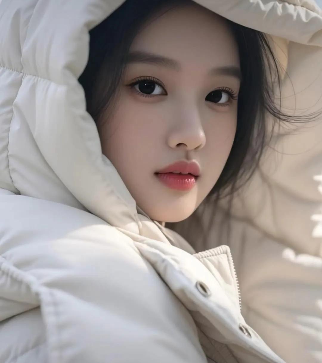 冬日暖阳下,微笑女孩与雪地相拥街拍 高清美女