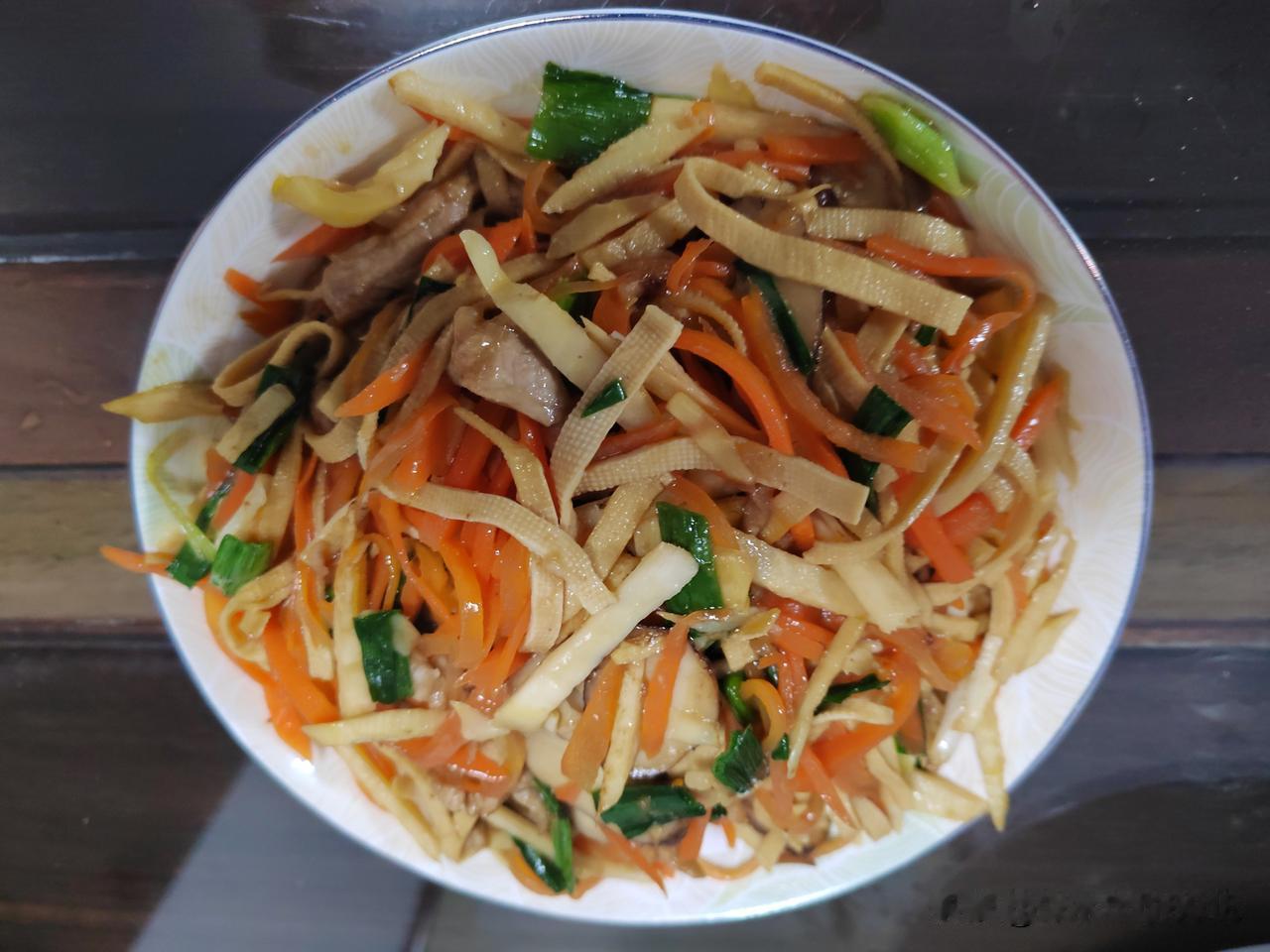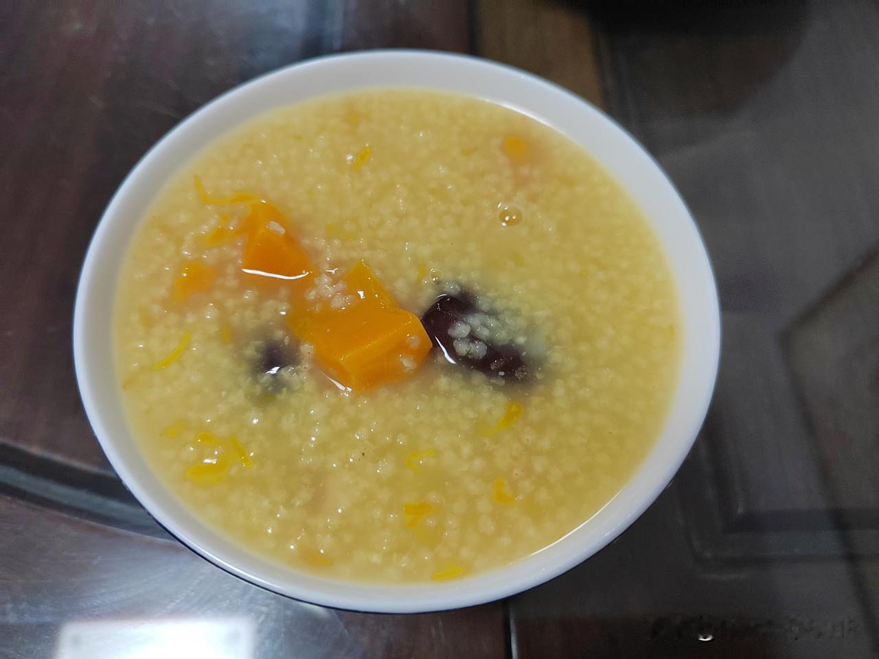 今天是2026年1月10日,南京市天气:多云到晴,气温4~10℃。 今天早餐:小米南瓜粥、煎汽糕、茶叶蛋、花生米、萝卜干,还有昨晚剩菜。 小米南瓜粥用电饭锅煮,里面加红枣、莲子、百合。 汽糕是浙江衢州一带的地方特色传统小吃,被称为中国式披萨,在淘宝上买的。 上午去美发店焗黑油,快过年了,把白头发处理一下,显得精神一些。 中午在家里把昨天晚上的剩饭剩菜加工一下,中饭就解决了,没有拍照。 昨天菜买得比较多,今天就没有买菜,晚上和老伴两个人吃,烧了三个菜,南瓜、冬笋胡萝卜肉丝、炒芦蒿。没有烧汤,喝点养生茶。 这就是退休人的生活,简简单单!