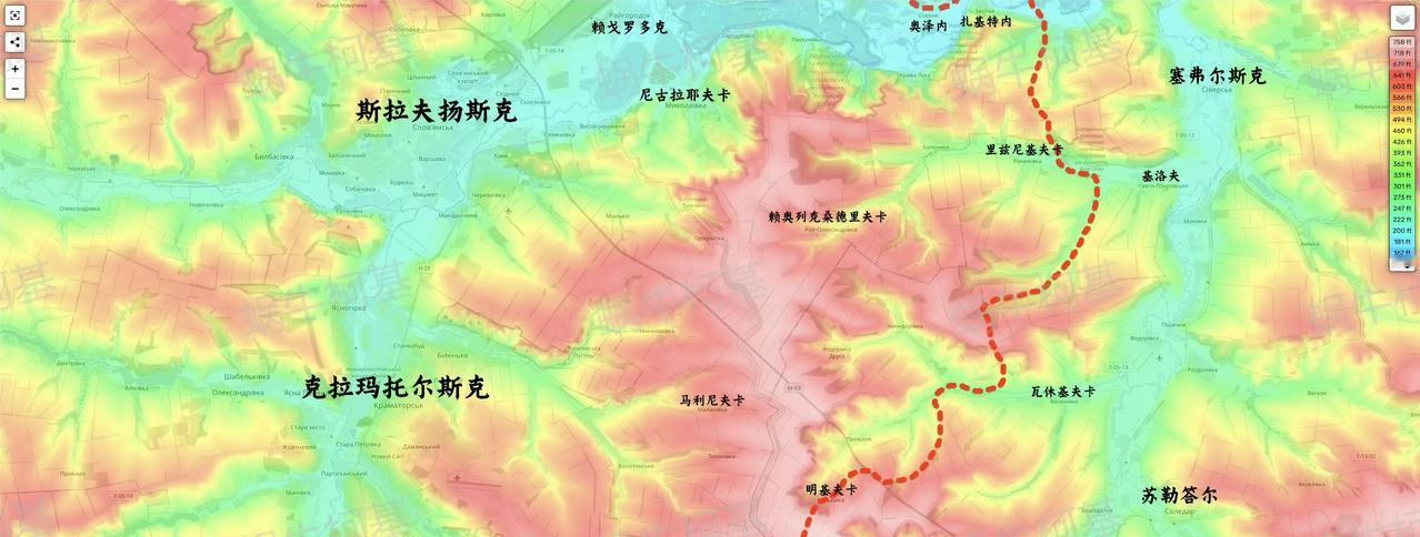 俄军南部集群占领了维罗柳比夫卡和马尔可夫,攻入明基夫卡,开始抢高地了。 从地形图上可以看出,俄军接下来向西进攻的地形就是一片高地带,而更西边的斯拉维扬斯克和克拉马托尔斯克都位于谷地。所以,抢占高地对俄军至关重要。不过,俄军之前都啃下了位于顿涅茨克岭上的恰索夫亚尔,打高地已经经验丰富了。#俄乌冲突#