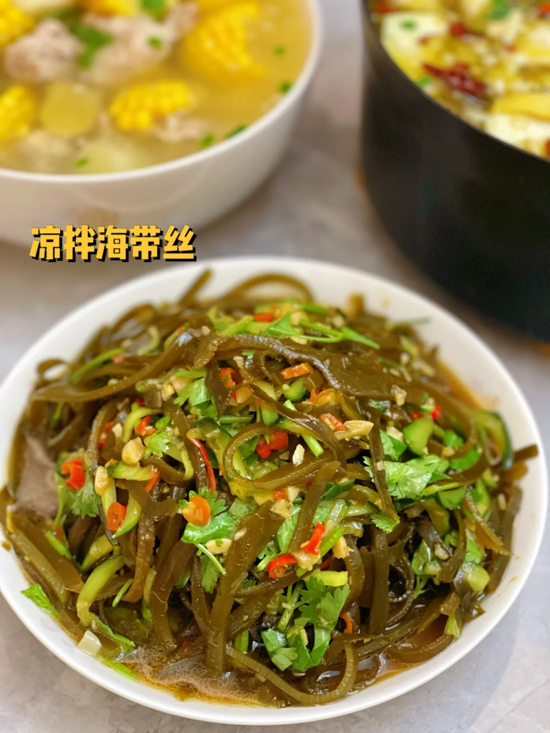 今日晚餐: 1.酸菜鱼 2.黄豆焖猪脚 3.干锅虾 4.玉米山药排骨汤 5.葱油蟹 6蒜泥菠菜 7.凉拌海带丝 8.五花肉炒土豆片 9.芹菜肉丝炒香干 10.恭喜朋友搬迁的蛋糕 你们最喜欢哪个菜呢,酸菜菜市场买的,买回家之后水里多泡泡就不会齁咸了,放了粉丝真好吃呀 黄豆猪脚今天做的好入味儿,干锅虾他们说是饭店的味道 想要哪个的做法呢