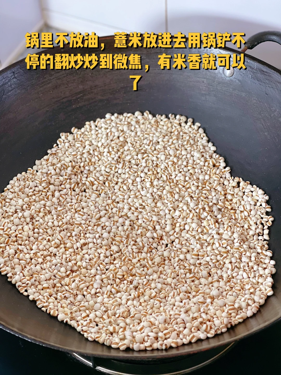 1. 锅里不放油,薏米放进去用锅铲不停的翻炒炒到微焦,有米香就可以了