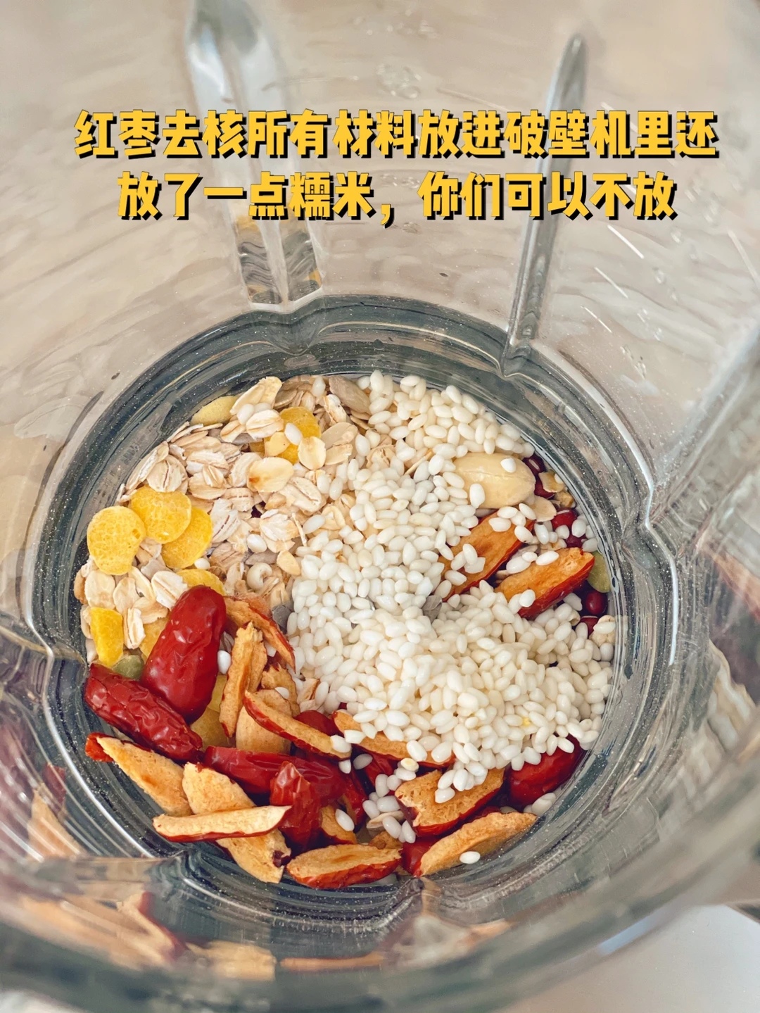 2. 红枣去核所有材料放进破壁机里还放了一点糯米,你们可以不放