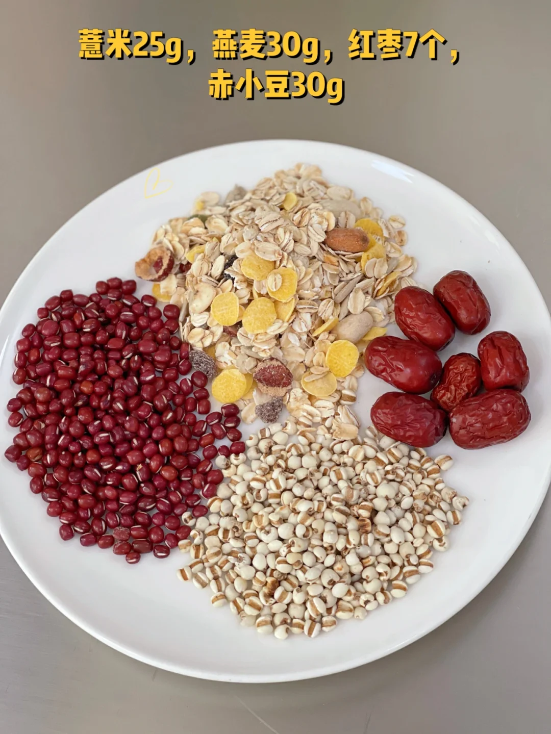 但是薏米一定要炒一下,炒到微微发黄有米香的状态就可以啦,可以一次性多做一点凉透了装盒,平时随喝随取!