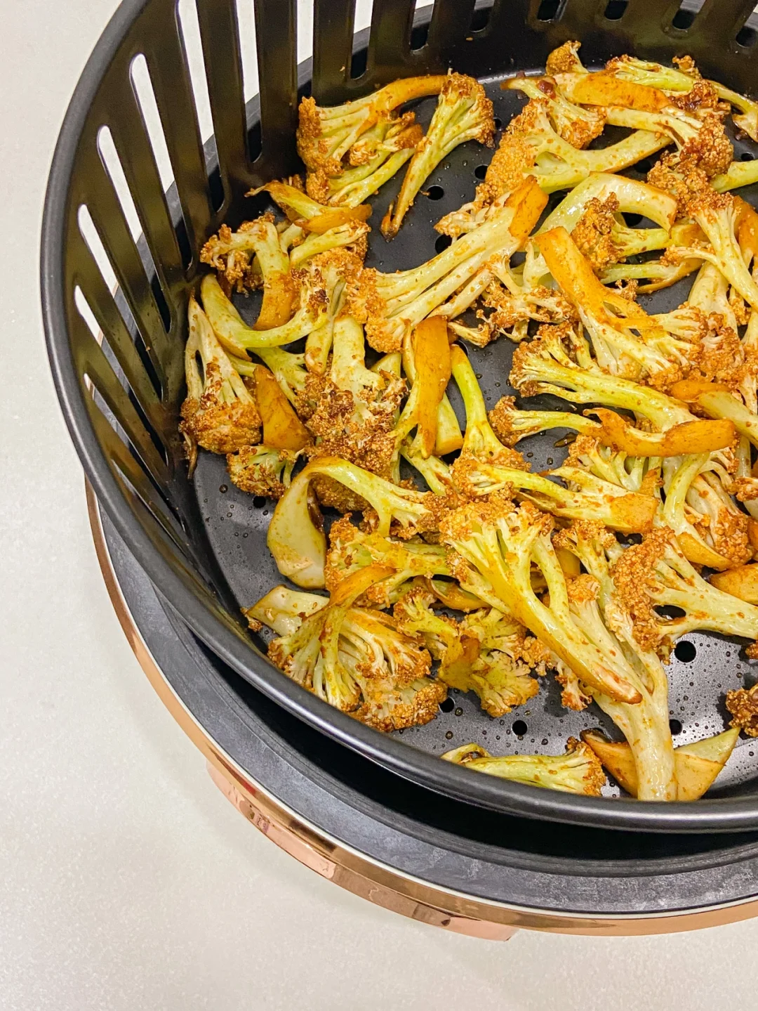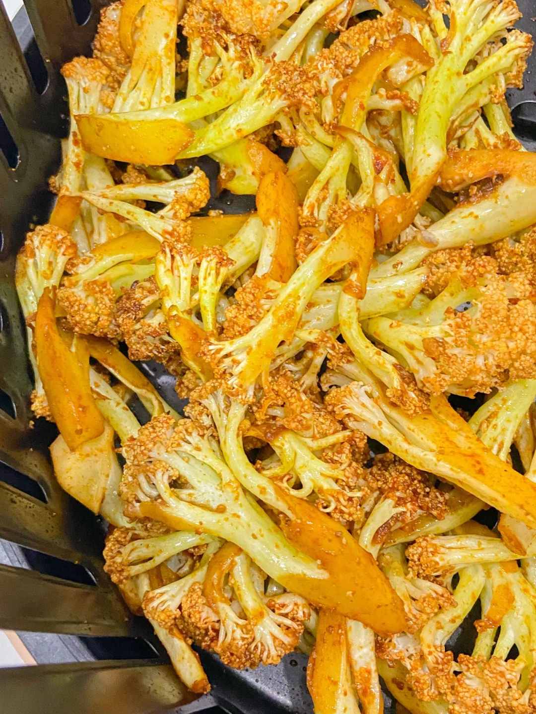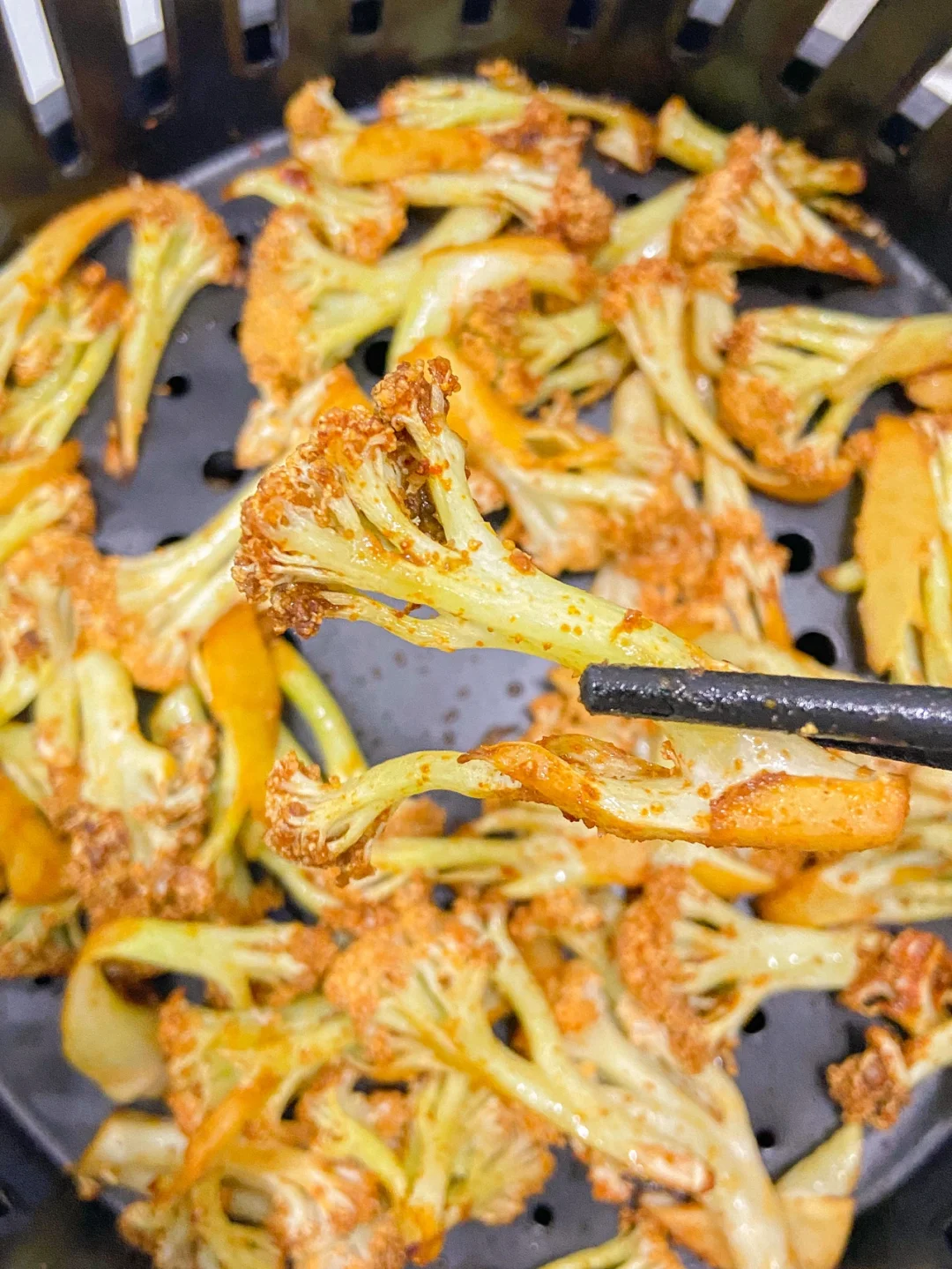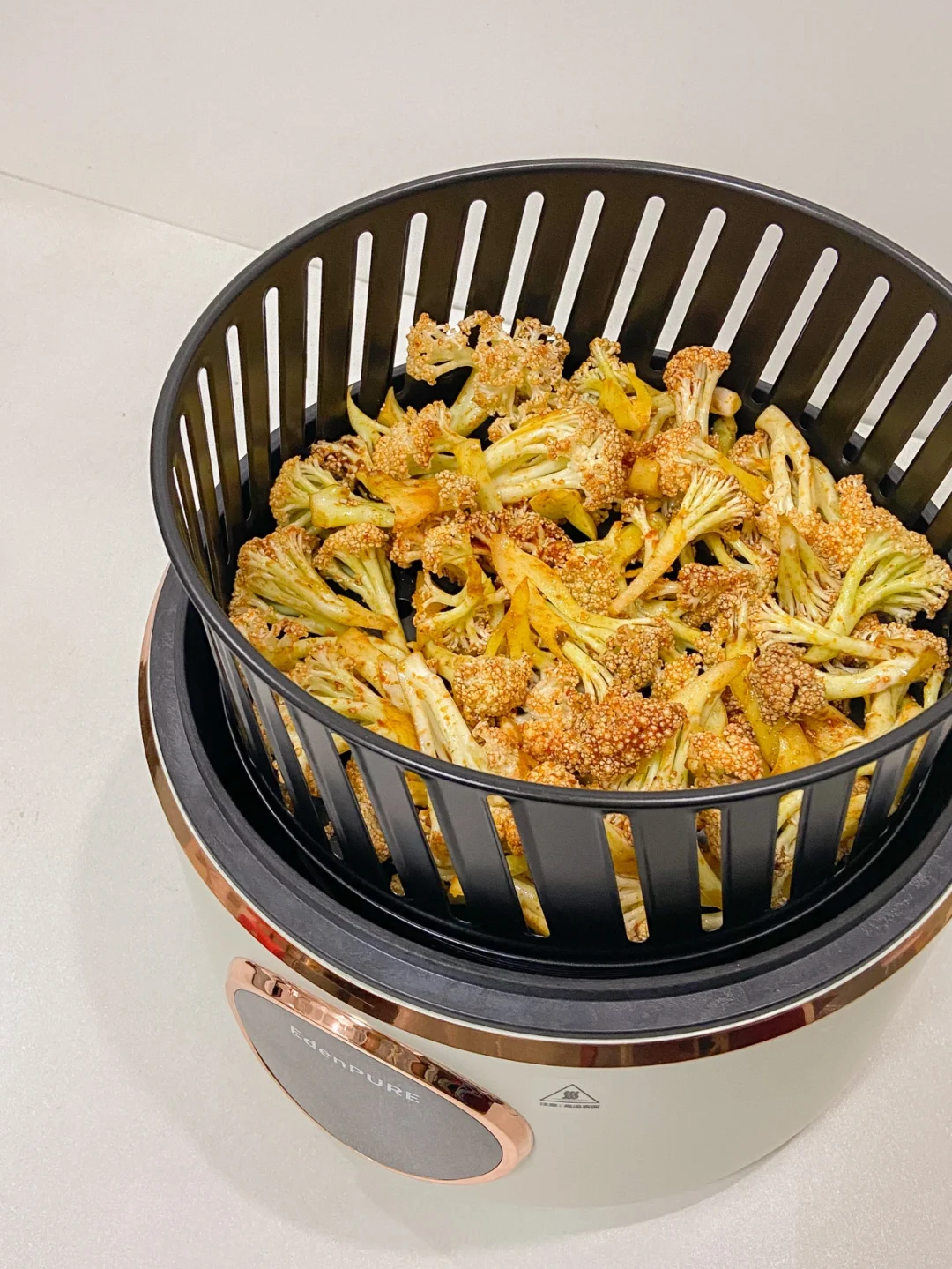 4️⃣炸篮摆上花菜 160度15分钟即可 隔五分钟需翻面