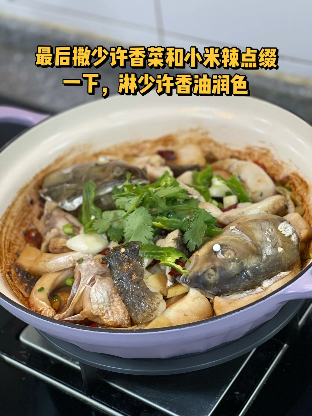 7. 最后撒少许香菜和小米辣点缀一下,淋少许香油润色