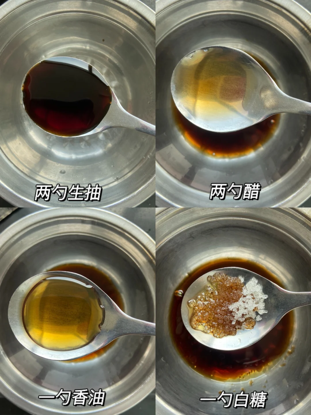 1️⃣调个酱汁:2勺生抽+2勺醋+1勺香油+1勺糖+1勺蒜末+1勺白芝麻+1勺韩式辣酱 搅拌均匀备用