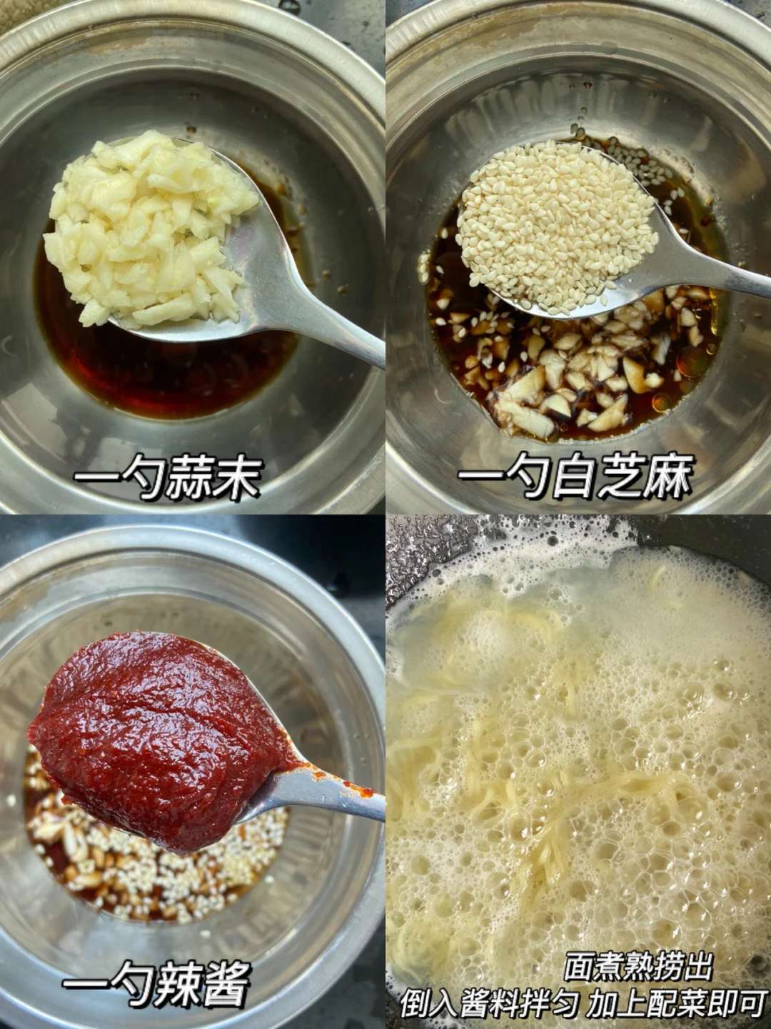 2️⃣面条煮熟 加入酱汁拌匀 摆上其他配料即可食用!