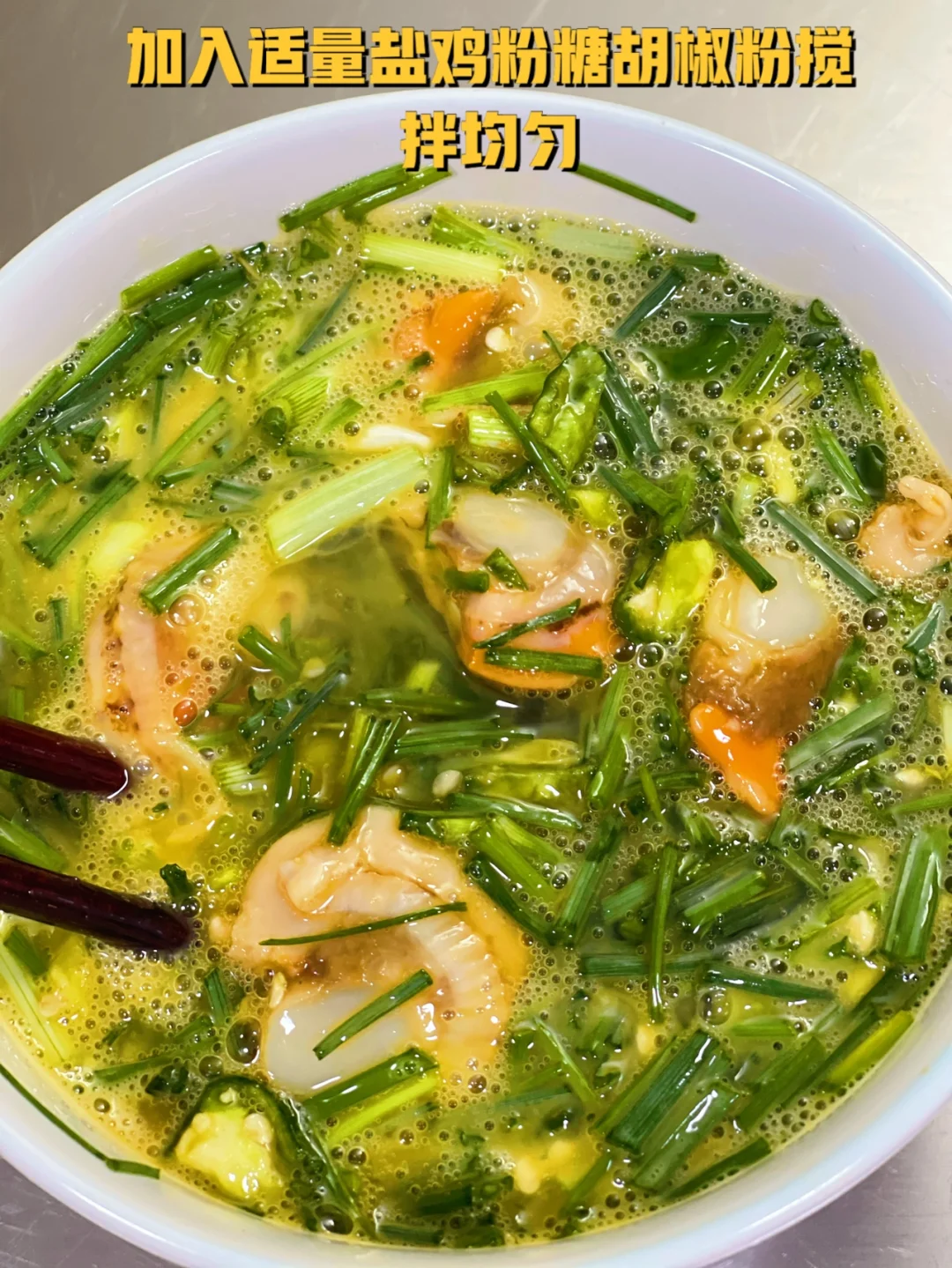 7. 加入适量盐鸡粉糖胡椒粉搅拌均匀