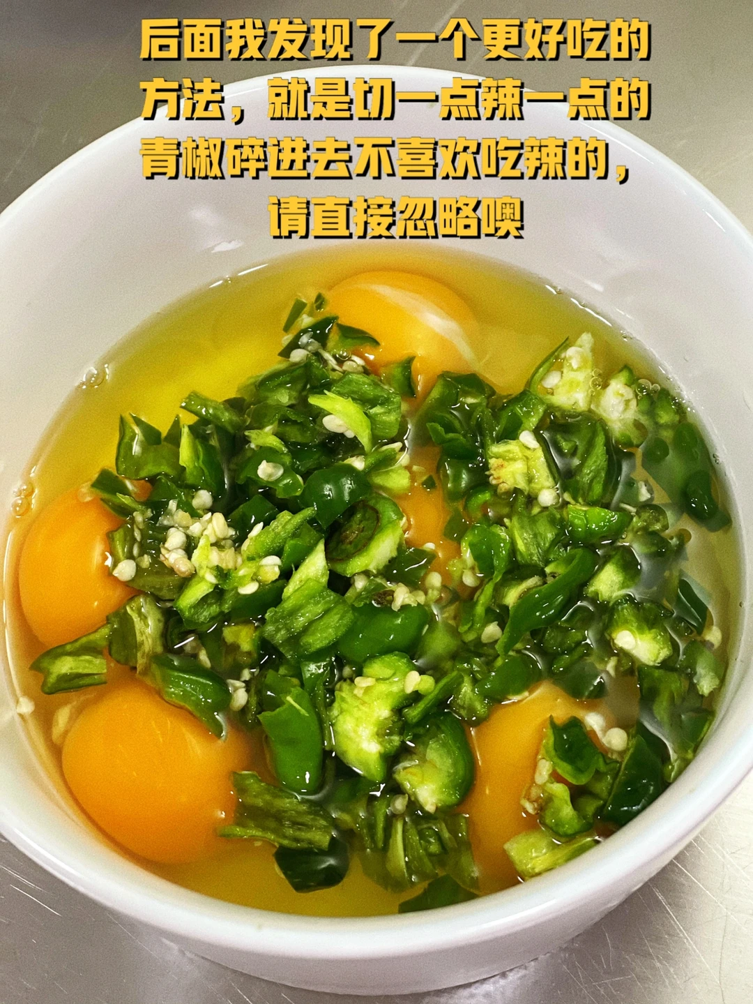 4. 后面我发现了一个更好吃的方法,就是切一点辣一点的青椒碎进去不喜欢吃辣的,请直接忽略噢