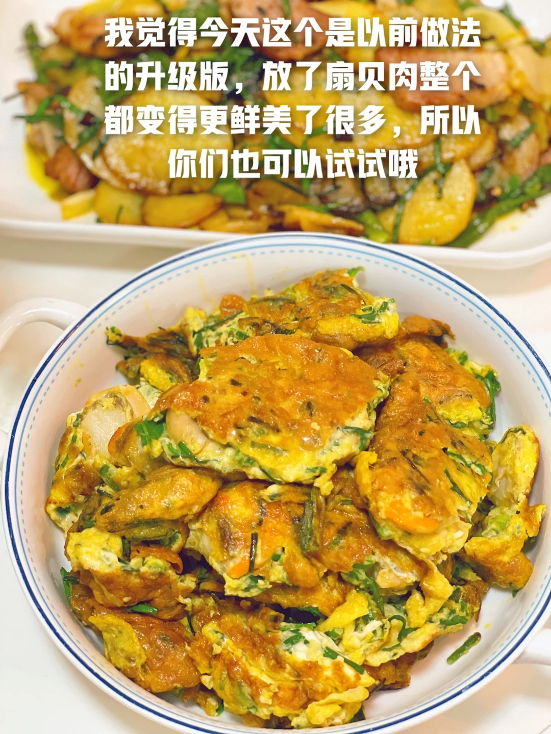 小时候在乡下吃的菜也都基本是自己家种的,所以不能像现在这样,每天很多花样换着吃,但是田埂上会长很多野葱,每年都会摘一些回来腌制起来或者炒鸡蛋吃,刚好朋友给了一些扇贝肉,我觉得放进去炒起来会更香嗯,果然
