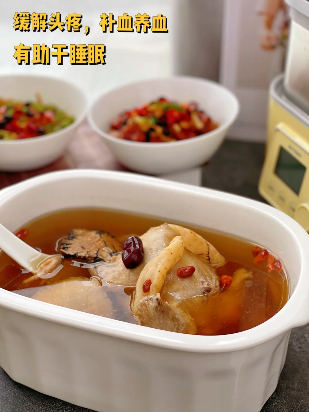 5.按精炖键开始慢炖,时间允许的话两个小时左右就可以啦,汤好了以后放适量盐即可,有和我一样煲好烫只喝汤不爱吃肉的吗 吃午餐之前先喝了一大碗呢