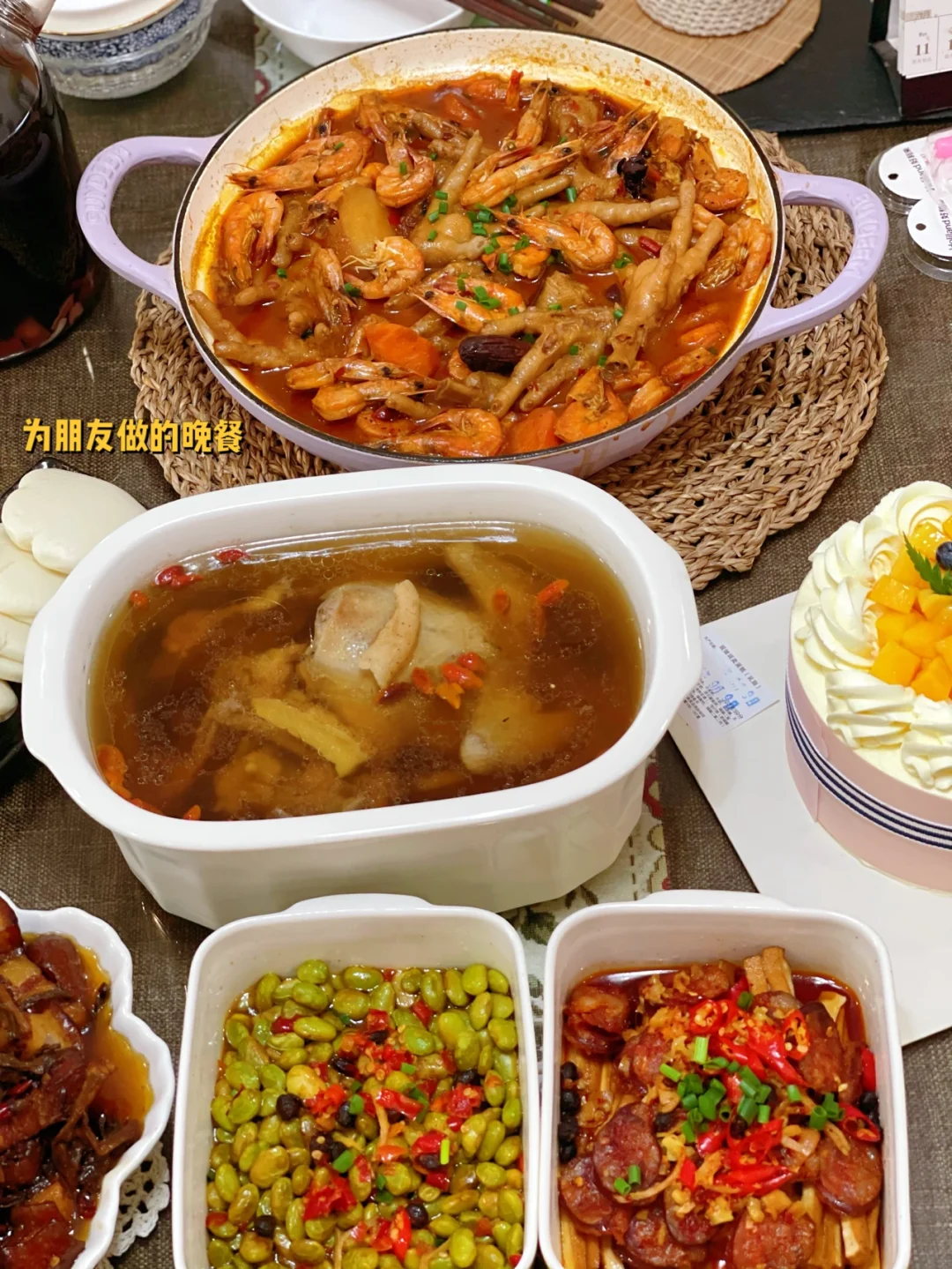 4.香干腊肠上面放一勺生抽,大蒜沫生姜丝,少许辣椒面,鸡精豆豉,最上面少许小米辣段儿点缀 汤快好之前放上去蒸大概25分钟左右啦,我按的是速蒸键