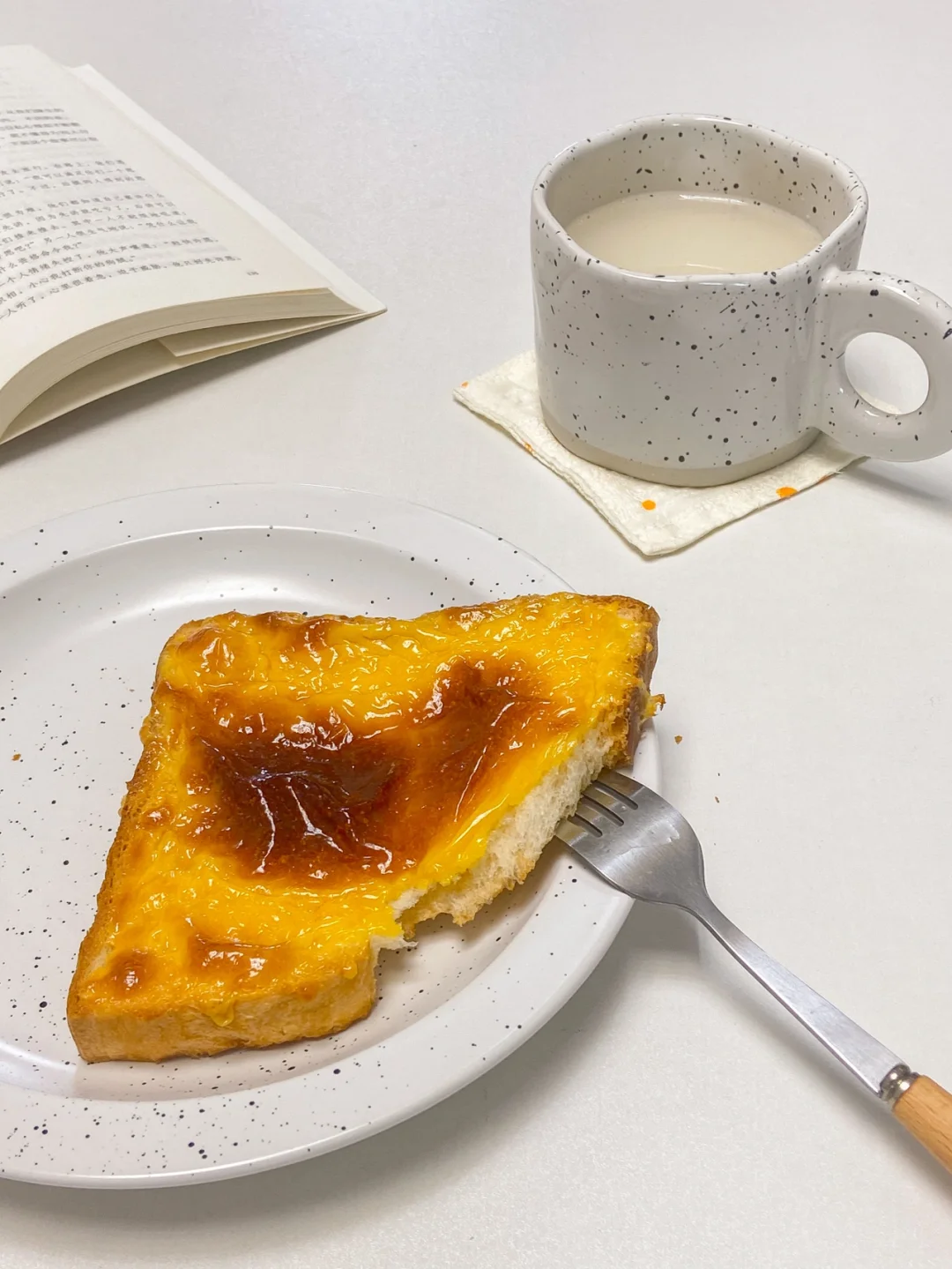 乳酪吐司早餐搭配牛奶🥛简直不要太好吃 比外面面包店买的更胜一筹 面包部分软糯可口带点甜 而且真的好简单快手 宝宝们一定要试试!
