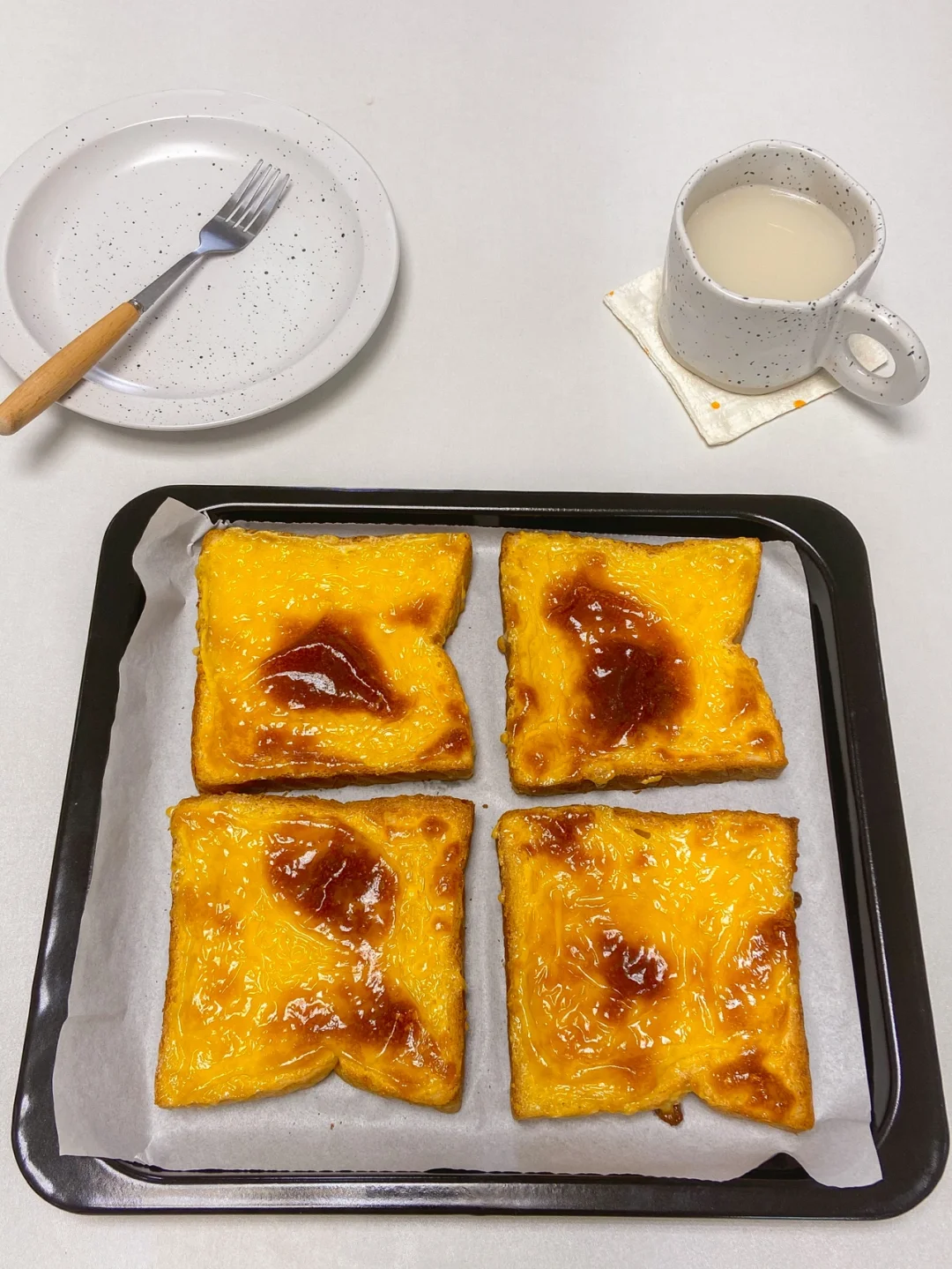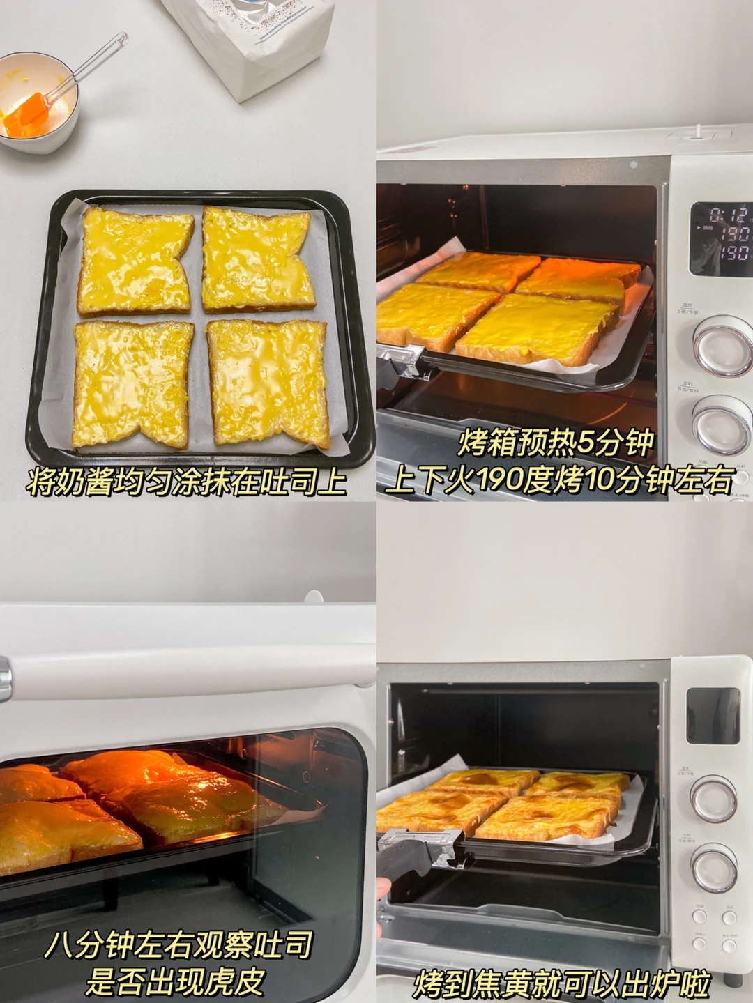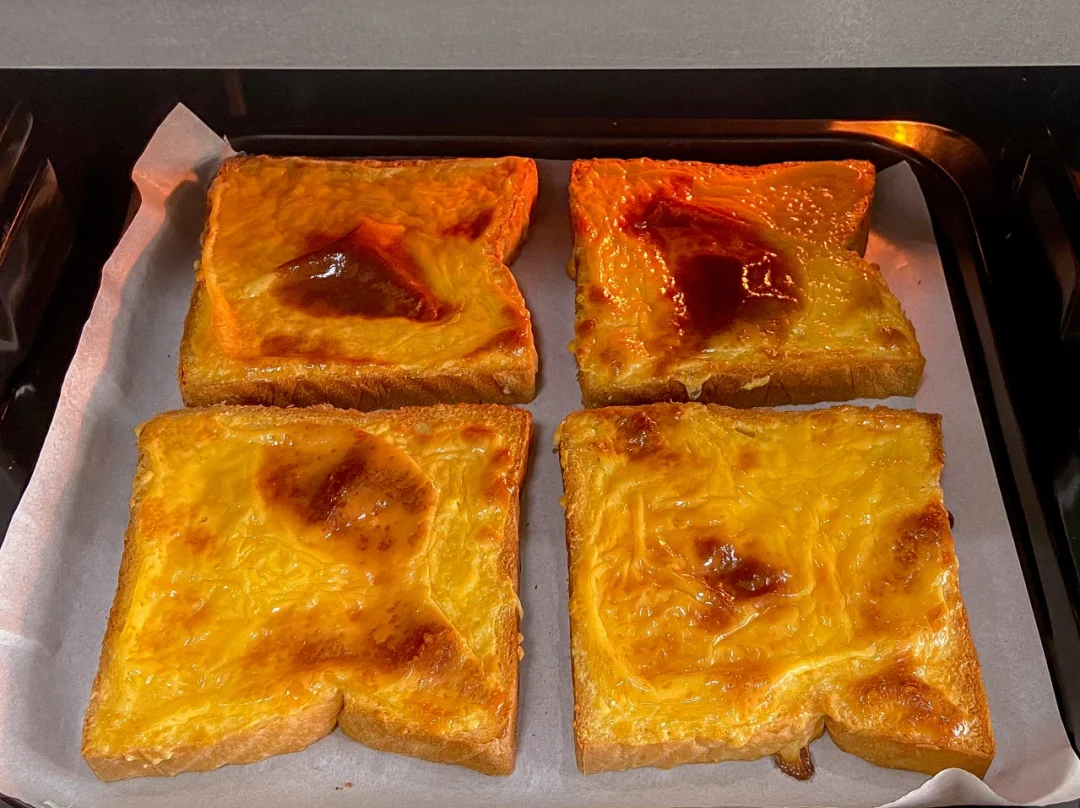 ️(烤8分钟的时候留意烤箱 吐司表面烤出虎皮即可喜欢脆的可以多烤一会儿)