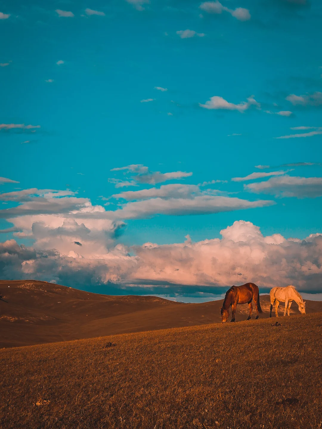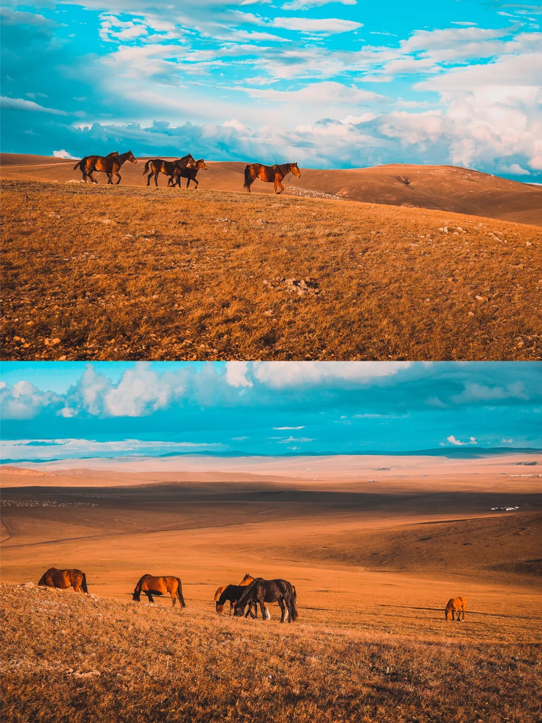 冲上山头,一群骏马在嬉戏,赶紧拿出相机记录。