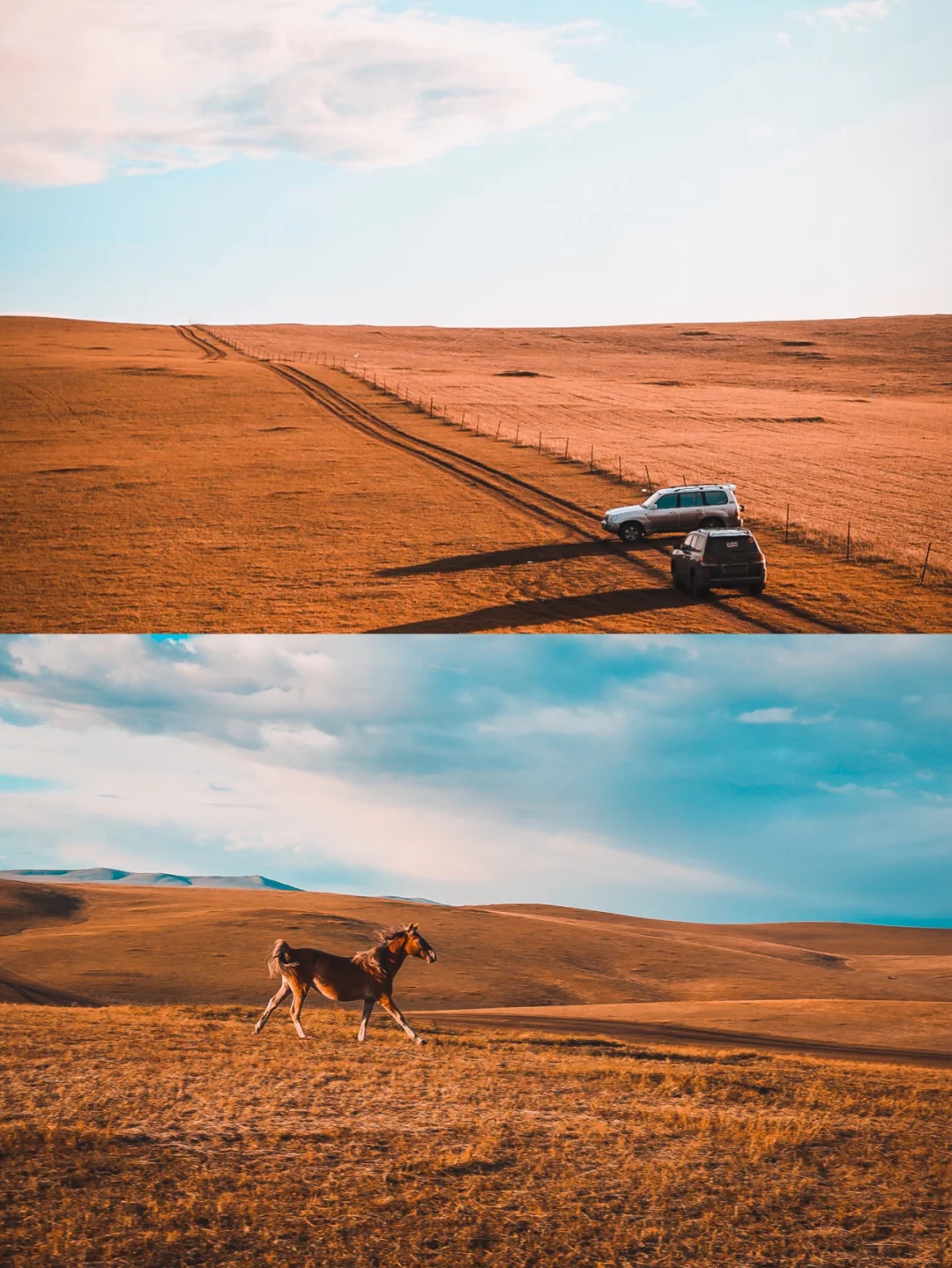 利用傍晚的阳光,在草原上拍出酷酷哒照片。