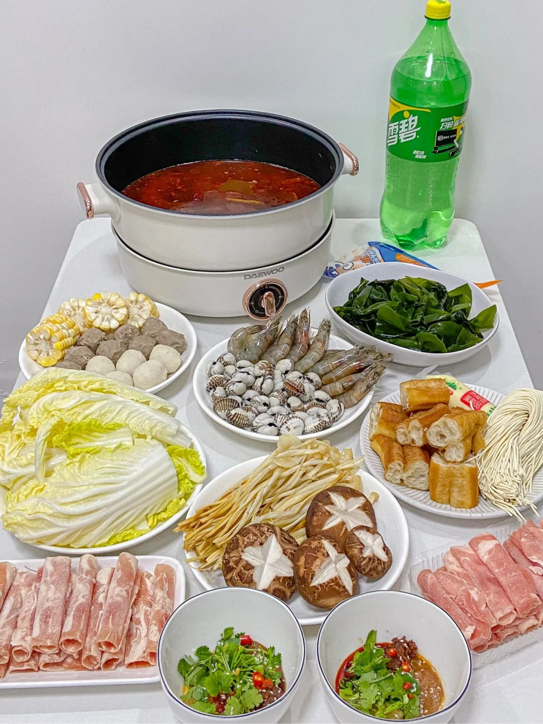 冬天少不了的当然是火锅呀 一到冬天外面的火锅店都挤满了人 每次饭点过去还得排队呢🤭今天就在自己家安排上一顿吃个过瘾🤗