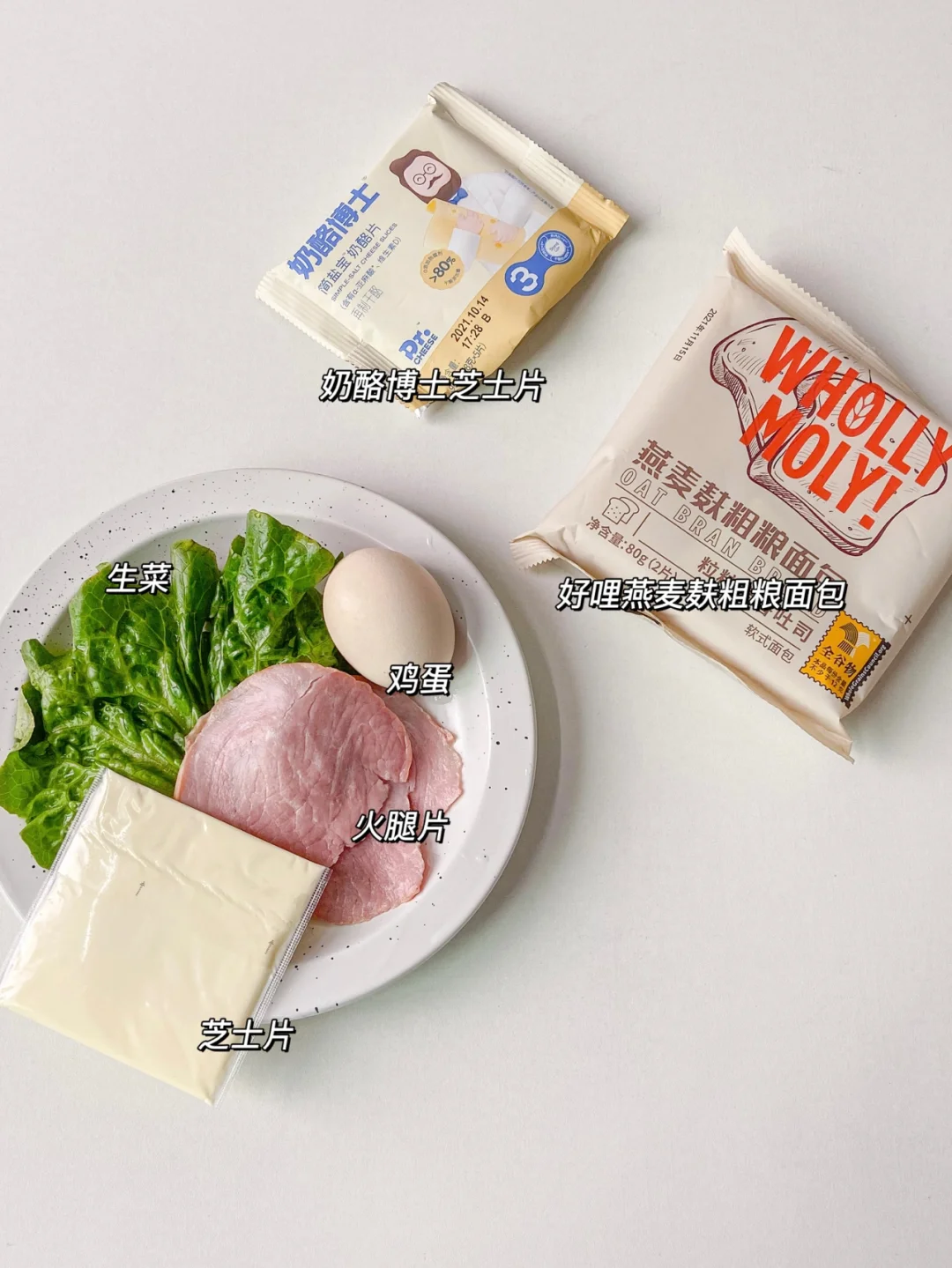 鸡蛋 火腿片 生菜 奶酪博士芝士奶酪片 好哩燕麦麸粗粮面包