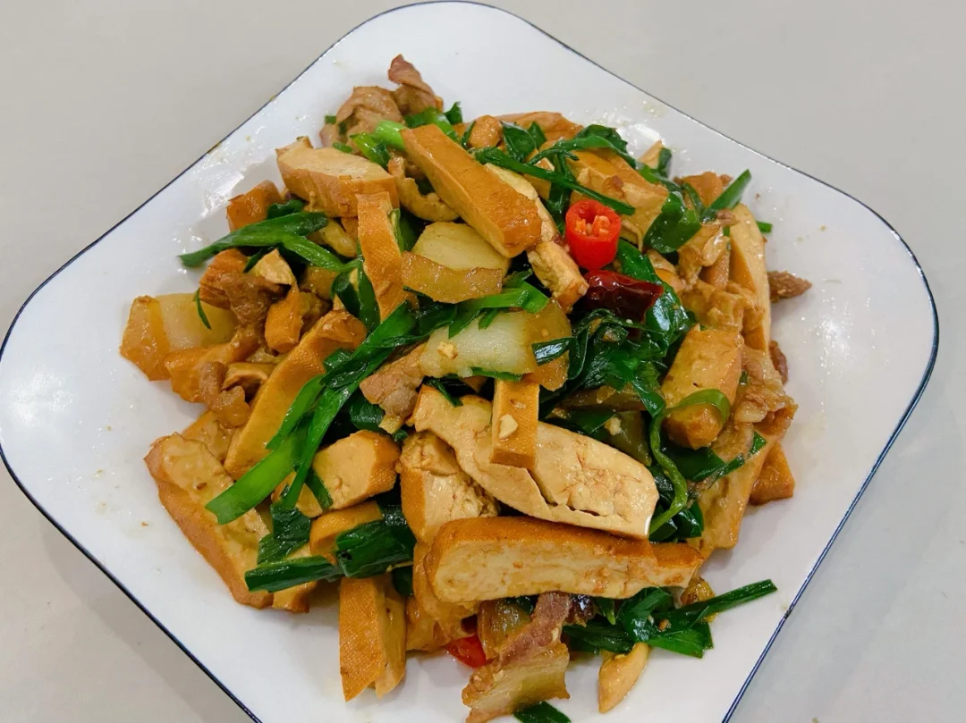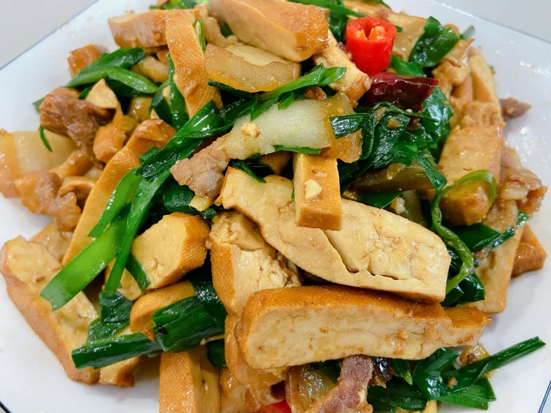 美食教程|整屋飘香的韭菜香干炒肉菜谱🍛