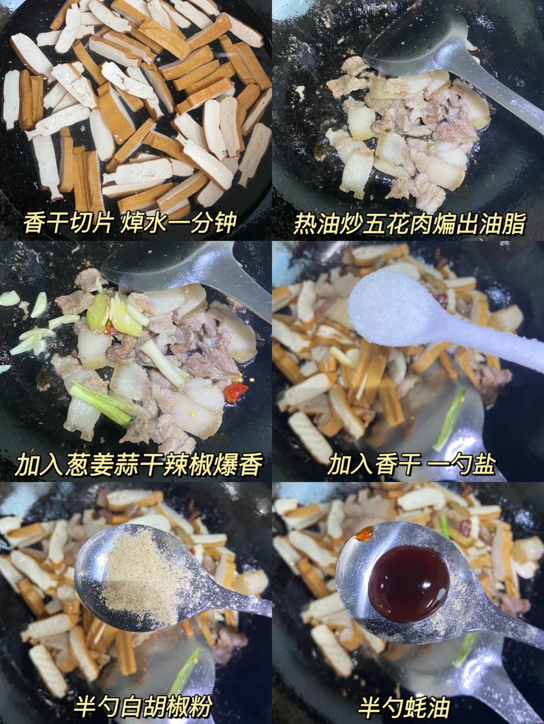 准备食材✨✨✨✨✨ 五花肉 香干 韭菜 葱 姜 蒜 干辣椒 小米椒 做法✨✨✨✨✨ 1️⃣香干切片 焯水一分钟 2️⃣热油炒五花肉煸出油脂 加入葱姜蒜干辣椒爆香 3️⃣加入香干 一勺盐➕半勺白胡椒粉➕半勺蚝油➕两勺生抽翻炒上色 4️⃣加入小米辣 韭菜翻炒断生即可 ✨ 一个人的独居生活|美食日记|美食教程日常|一人食|今天吃什么|晚餐吃什么|聚餐下厨|宅家DIY|宅家花样美食|吃啥|两个人吃什么|两人三餐四季|下厨房|我的美食日记|美食分享|食谱|小吃|我的私藏美食|下饭菜|菜谱大全|家常菜