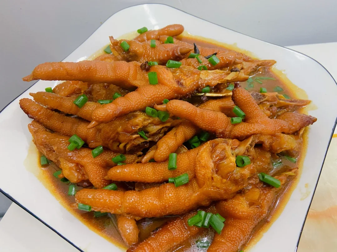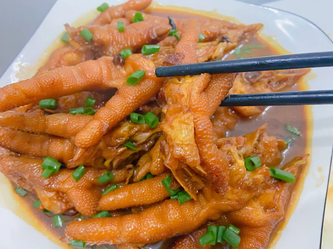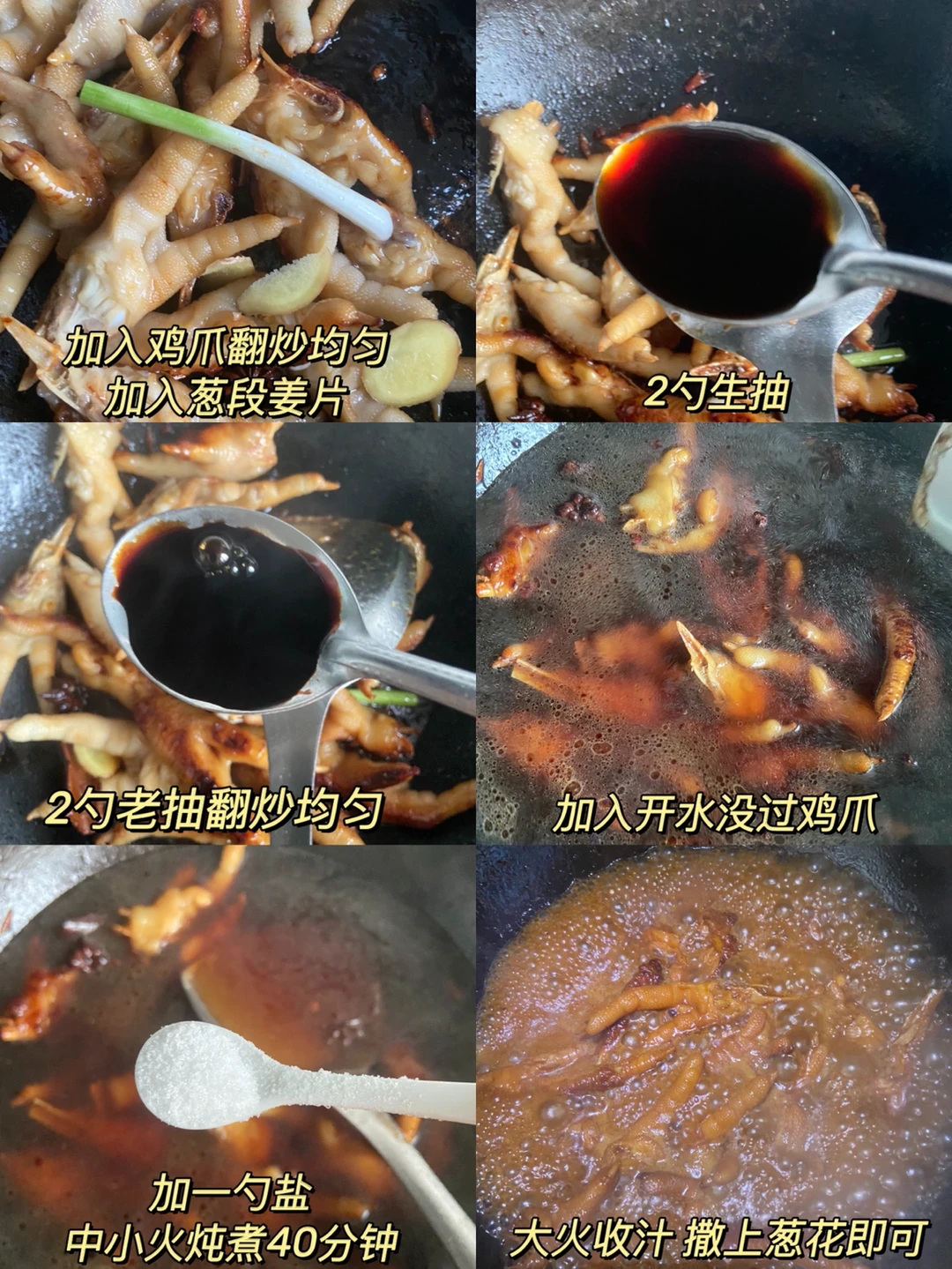 5️⃣加入开水没过鸡爪 加一勺盐 中小火炖煮40分钟 大火收汁 撒上葱花即可