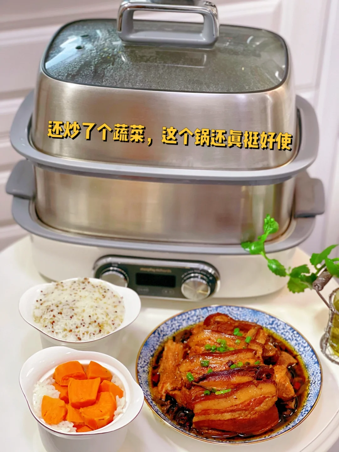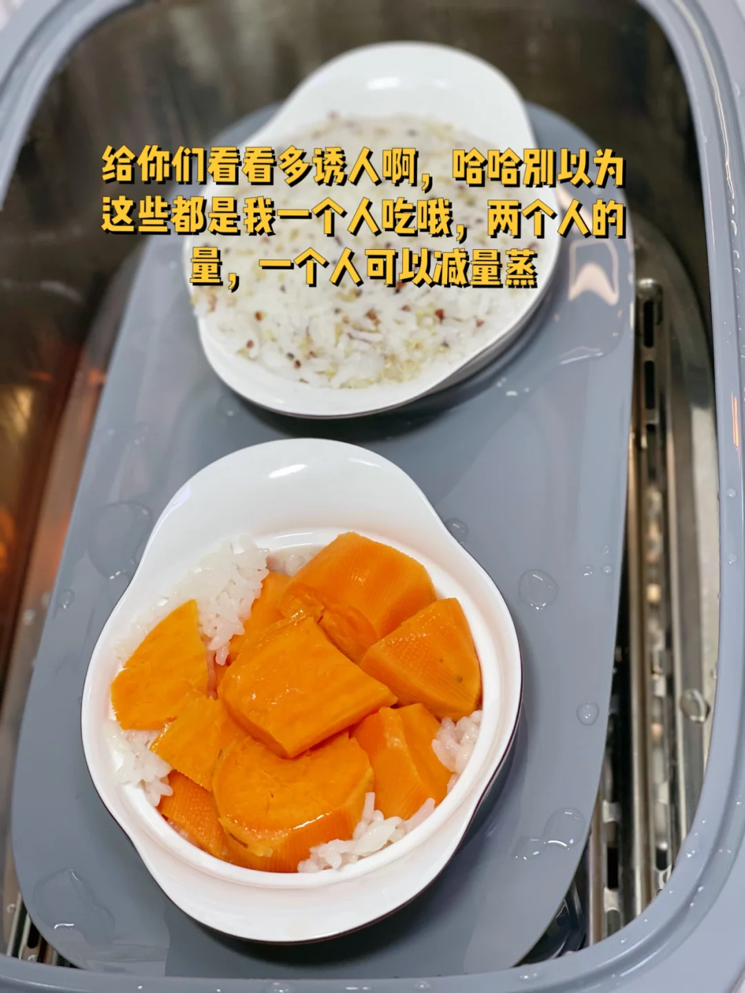 12. 另外两个小炖盅我也没有浪费,一个米饭里面放了藜麦,另外一个米饭上面放了红薯,好方便啊