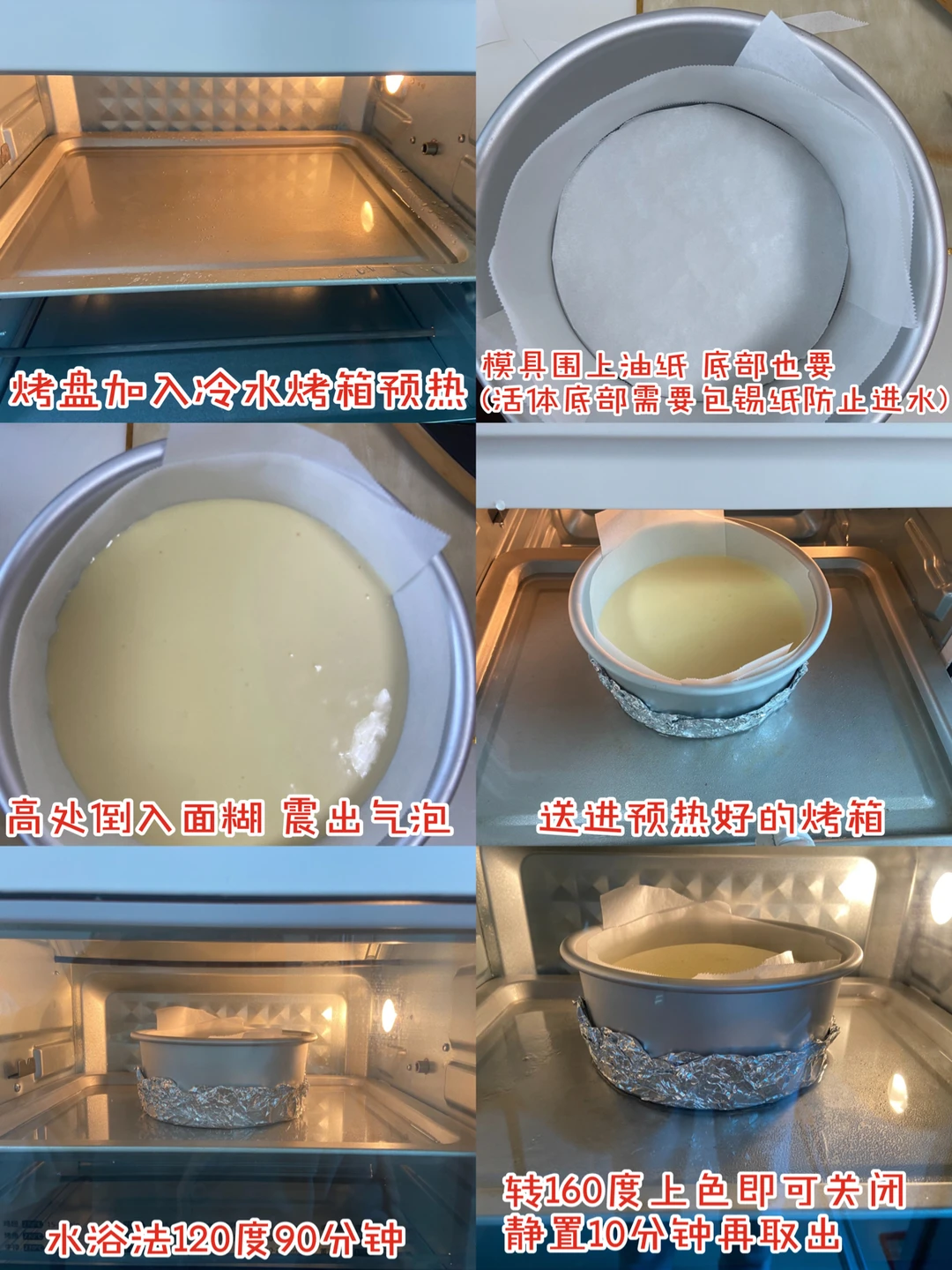 5️⃣烤箱底部烤盘加水 烤箱预热水浴法120度90分钟后转160度6分钟