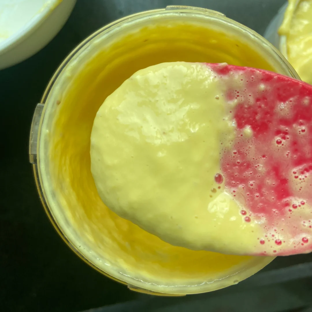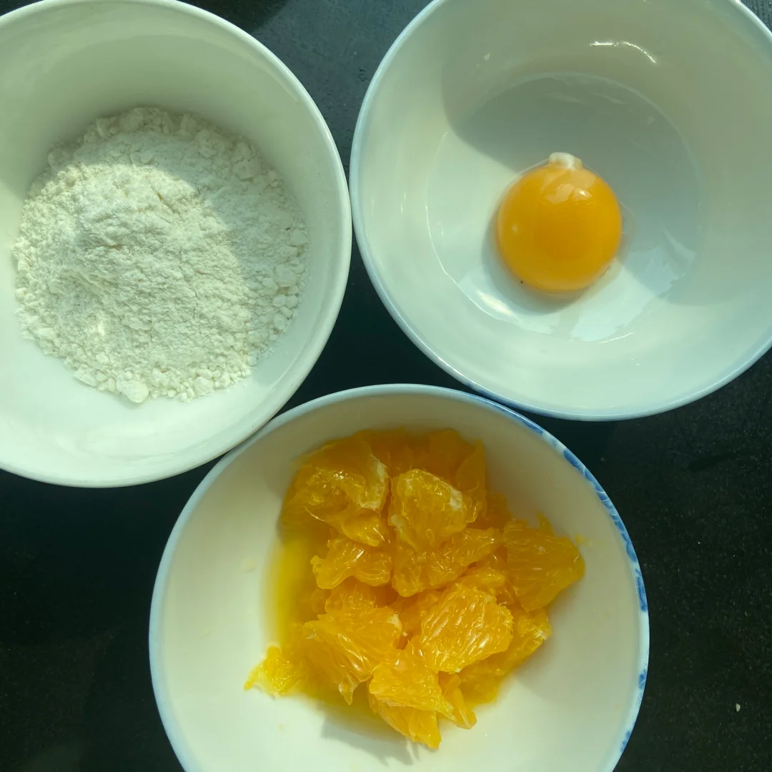 3️⃣再将面粉放入搅拌均匀(因为橙子有大有小如果觉得太稀可以适当再加点面粉 太稠就加点水)