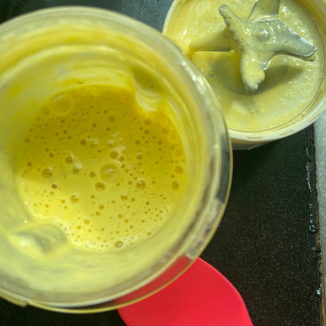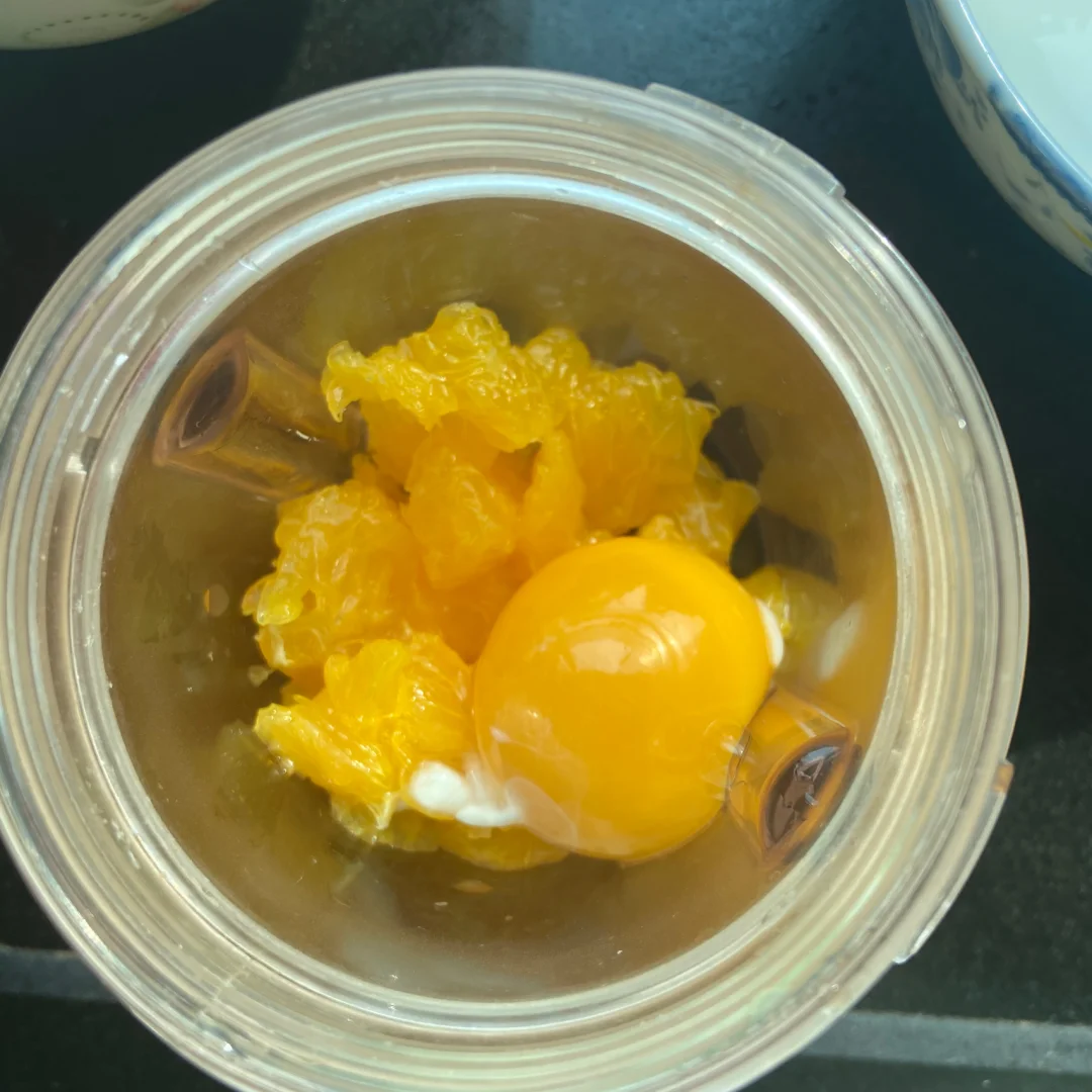 2️⃣把蛋黄和橙肉先放进料理机搅打3分钟