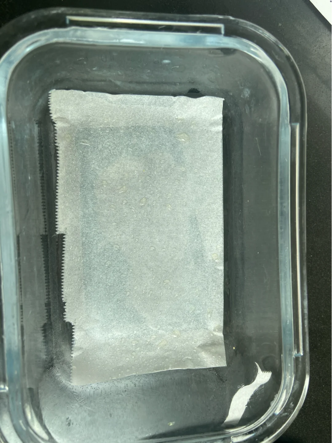 4️⃣模具上铺一张油纸 抹薄薄一层宝宝油方便脱模 倒入液体 再将橙子片轻轻放在上面 包上保鲜膜并戳几个洞