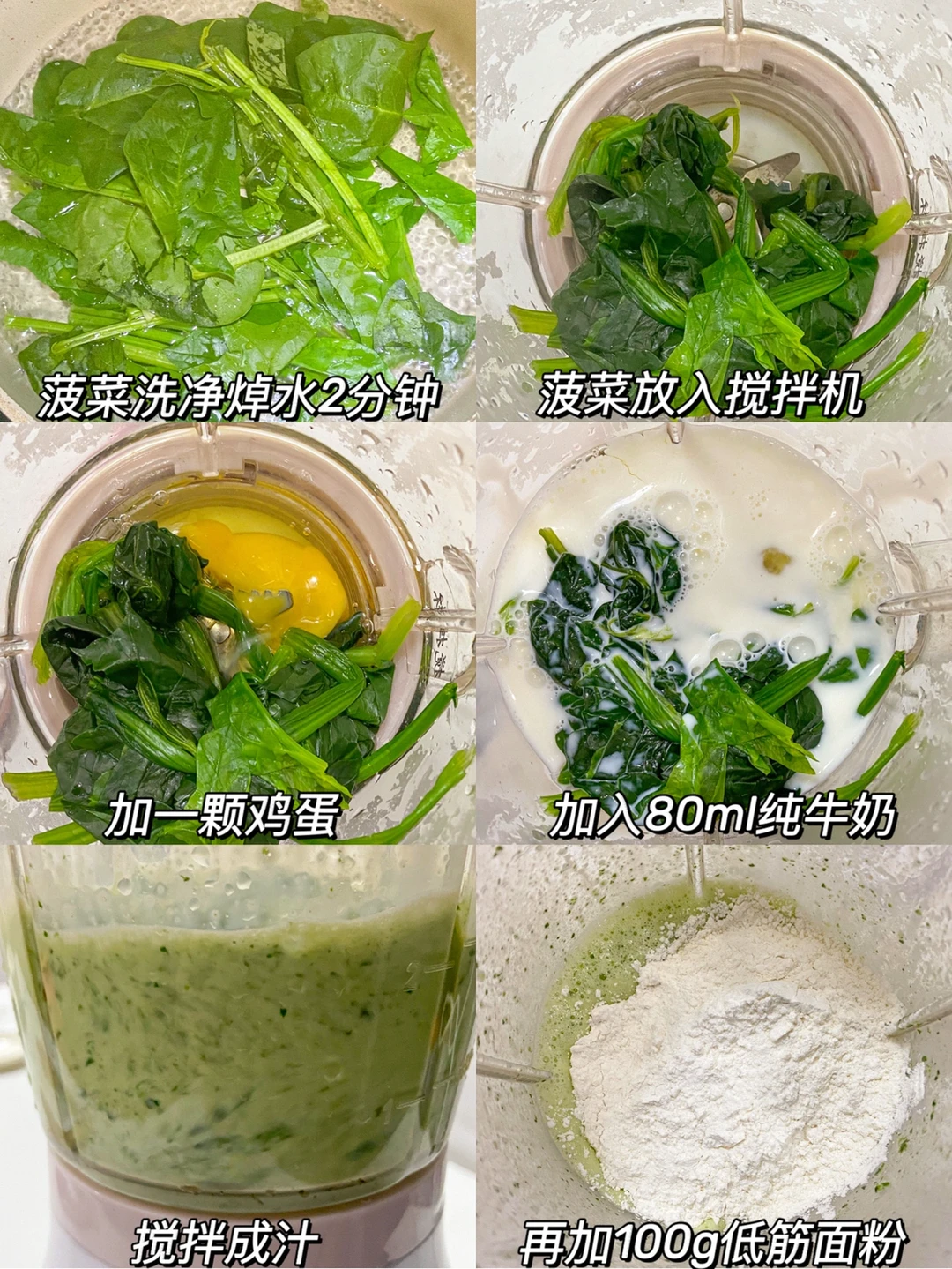 菠菜60g 鸡蛋一颗 牛奶80ml 低筋面粉100g
