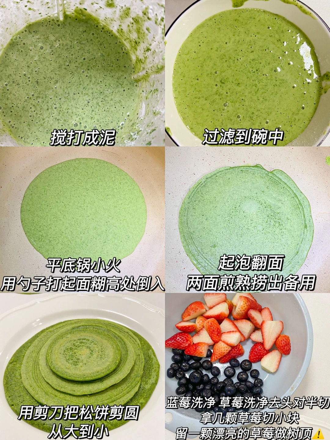 又要到圣诞季啦 去年的圣诞女儿才两岁不懂 现在会讲话啦 提前做一次有仪式感的宝宝大人都可以吃的圣诞树🎄~草莓菠菜松饼树给她点惊喜🥳
