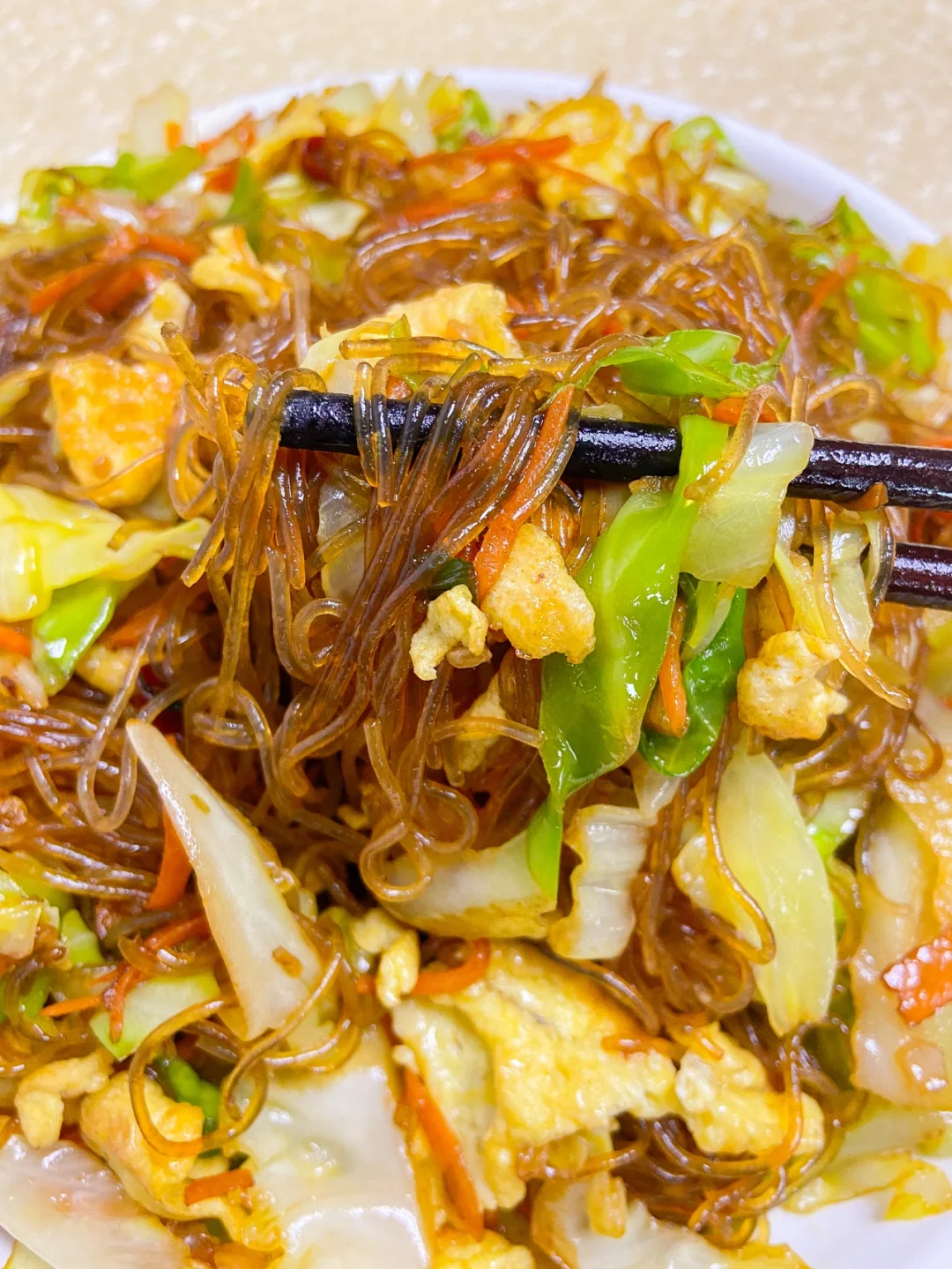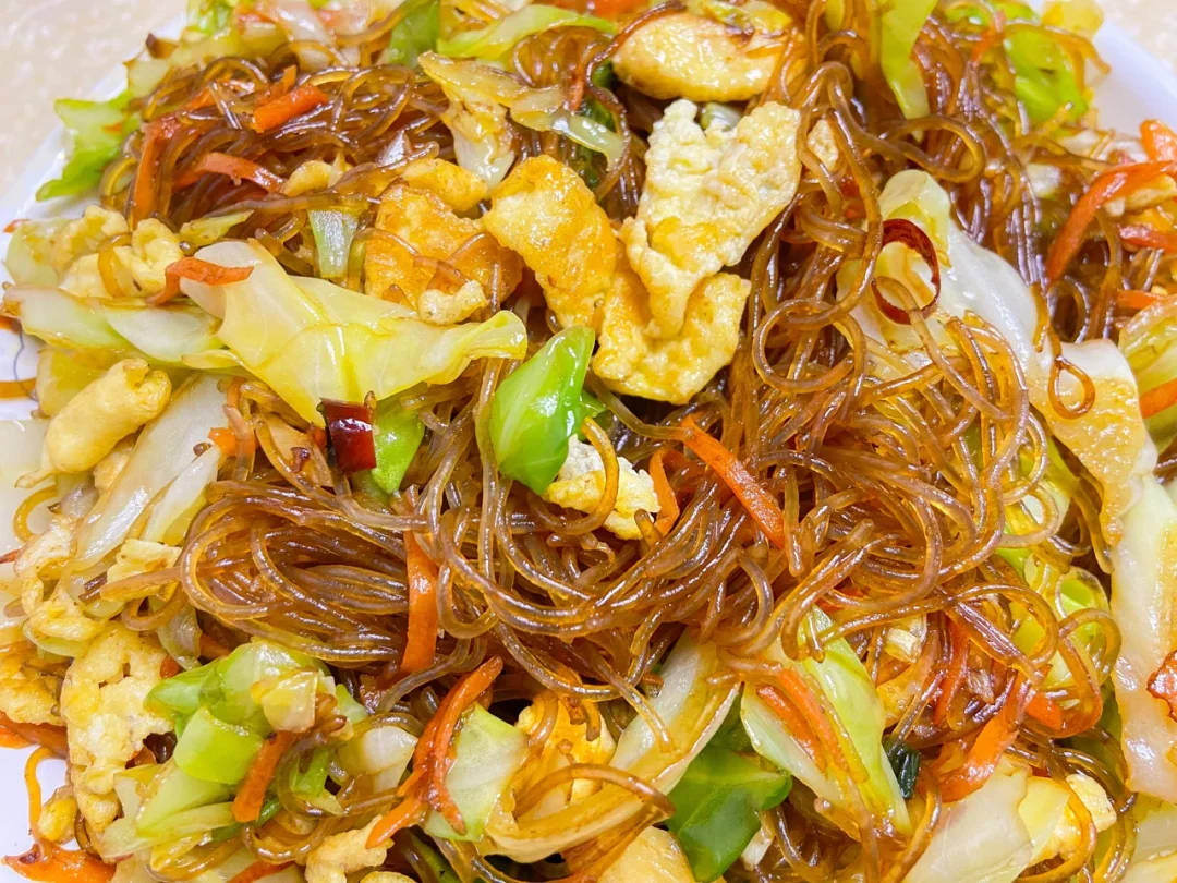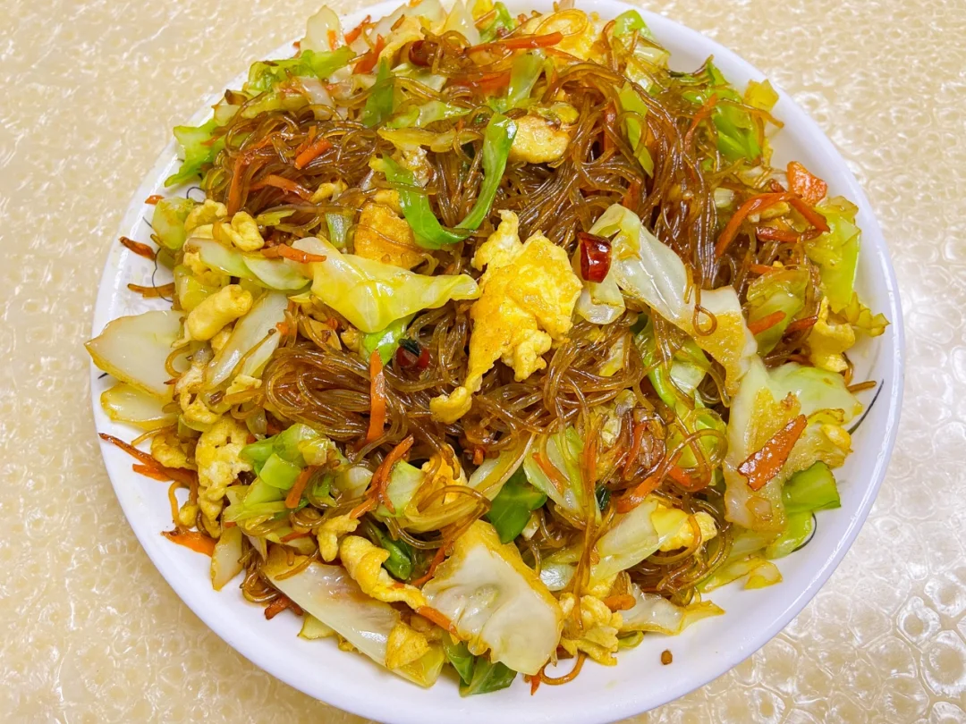 美食教程|好吃下饭的家常菜包菜炒粉丝🥢
