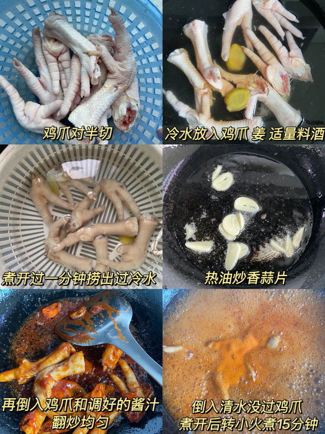 3️⃣热油炒香蒜片 再倒入鸡爪和调好的酱汁 翻炒均匀