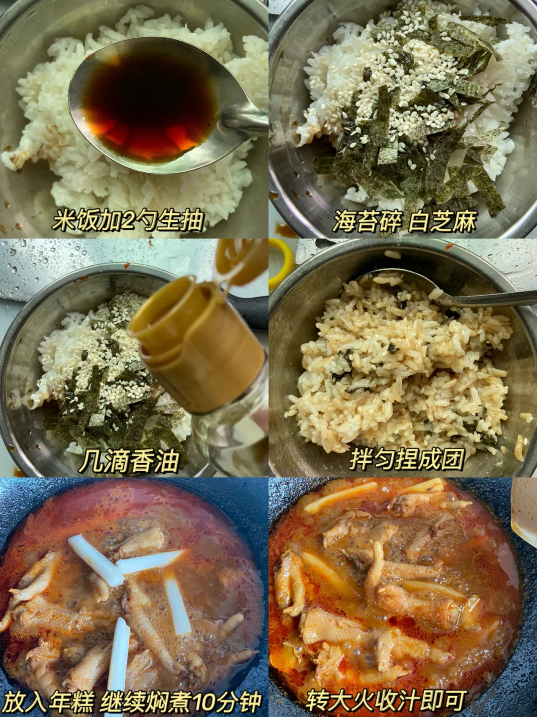 米饭加2勺生抽 海苔碎 白芝麻 几滴香油拌匀捏成团蘸鸡爪汤吃绝了 超级下饭 快做起来呀[斜眼R]