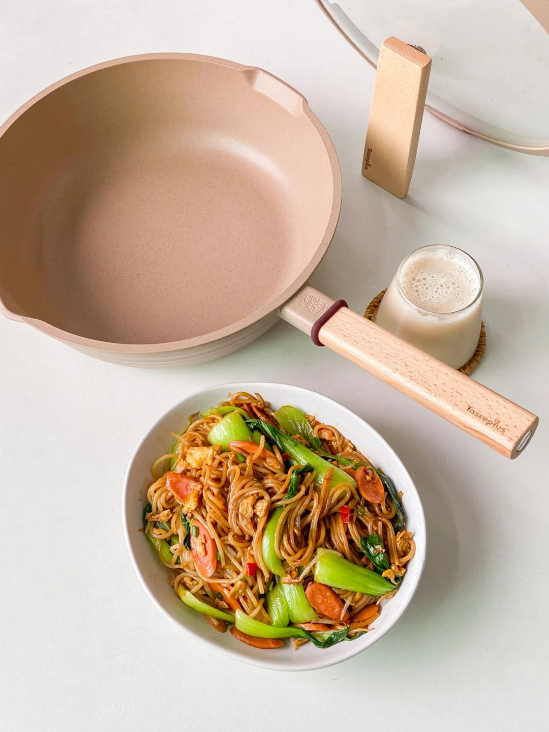 用的这锅子🍳高颜值水波纹 小麦色可好看了 还挺全能的 煎炒炖煮样样皆通 有双向的导流口 也不用担心倒菜的时候汤汁把锅滴起来 坠喜欢的是它把柄上的硅胶感温圈 温度50度以上就会变成红色 这个提醒也忒贴心了 让人用着更省心🤗