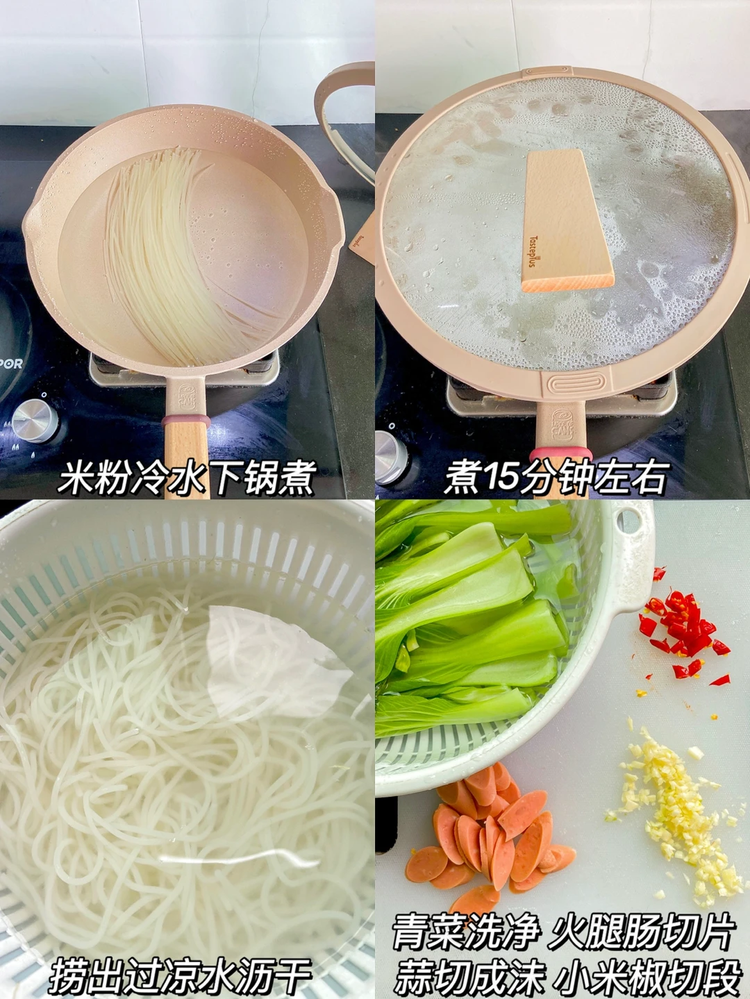 1️⃣米粉冷水下锅煮 煮15分钟左右或者提前冷水泡 煮沸一会就熟了 捞出过凉水沥干