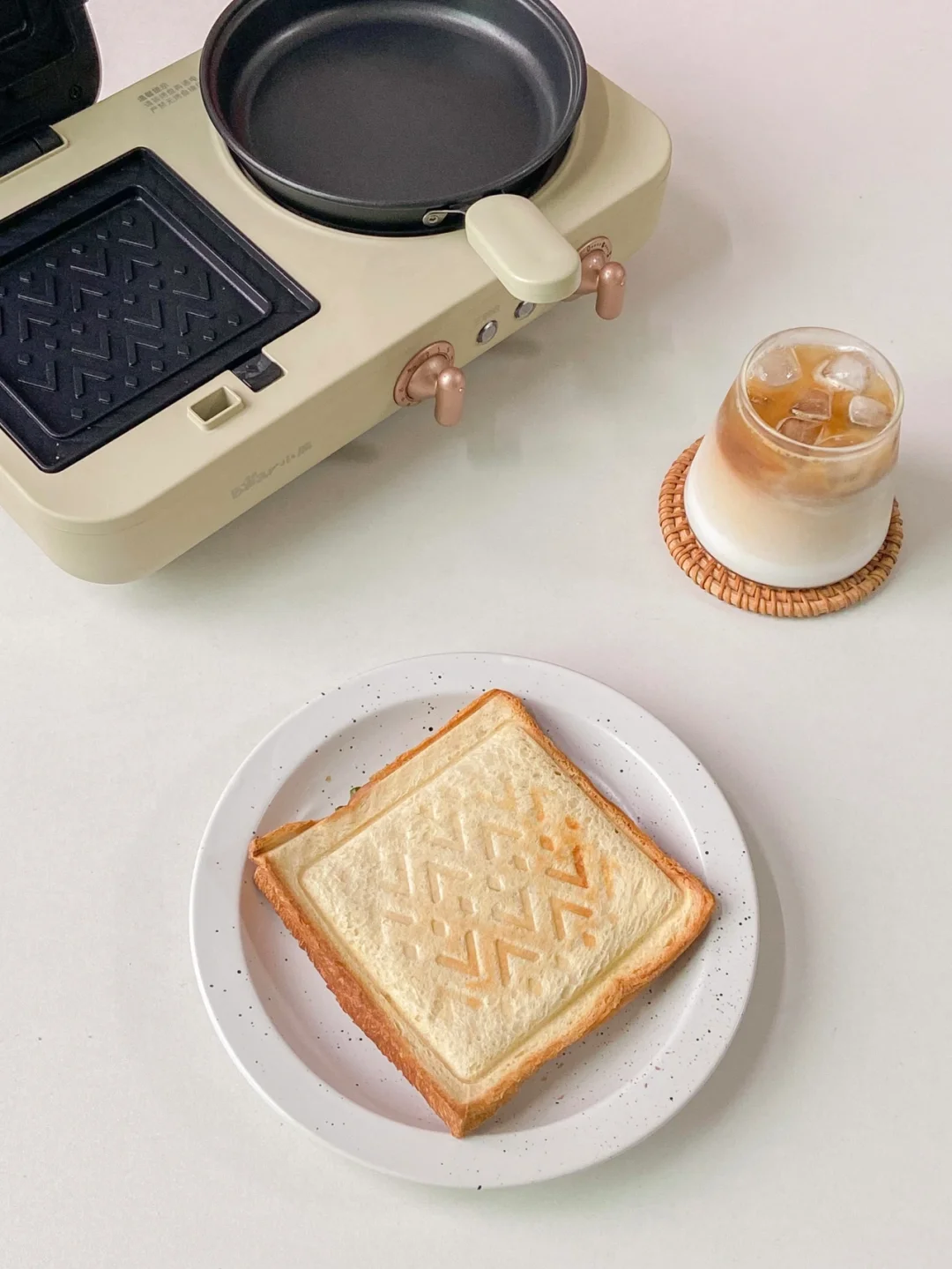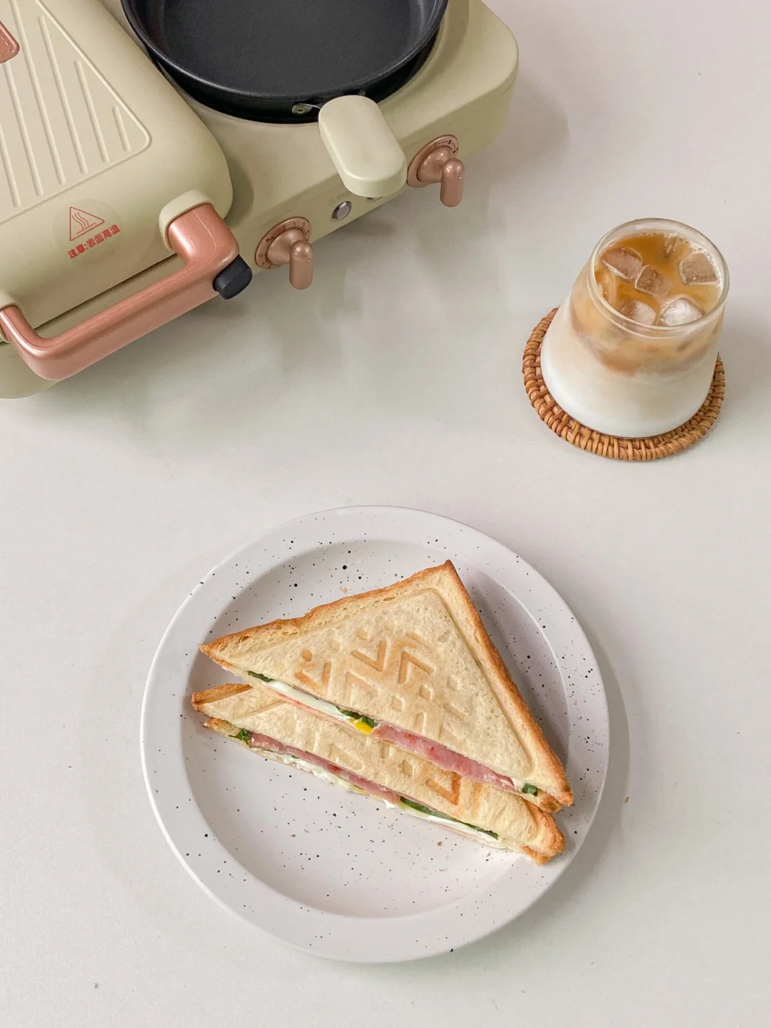 小熊面包机的多功能真的很棒 有两个旋钮 左右两边分开控制 三明治封边设计 再也不用担心三明治漏馅料啦 烤三明治的同时还可以煎个香肠 饺子或者煮个面条 不粘的煎盘还有可以拆卸的烤盘方便清洗 真的太爱了👍🏻