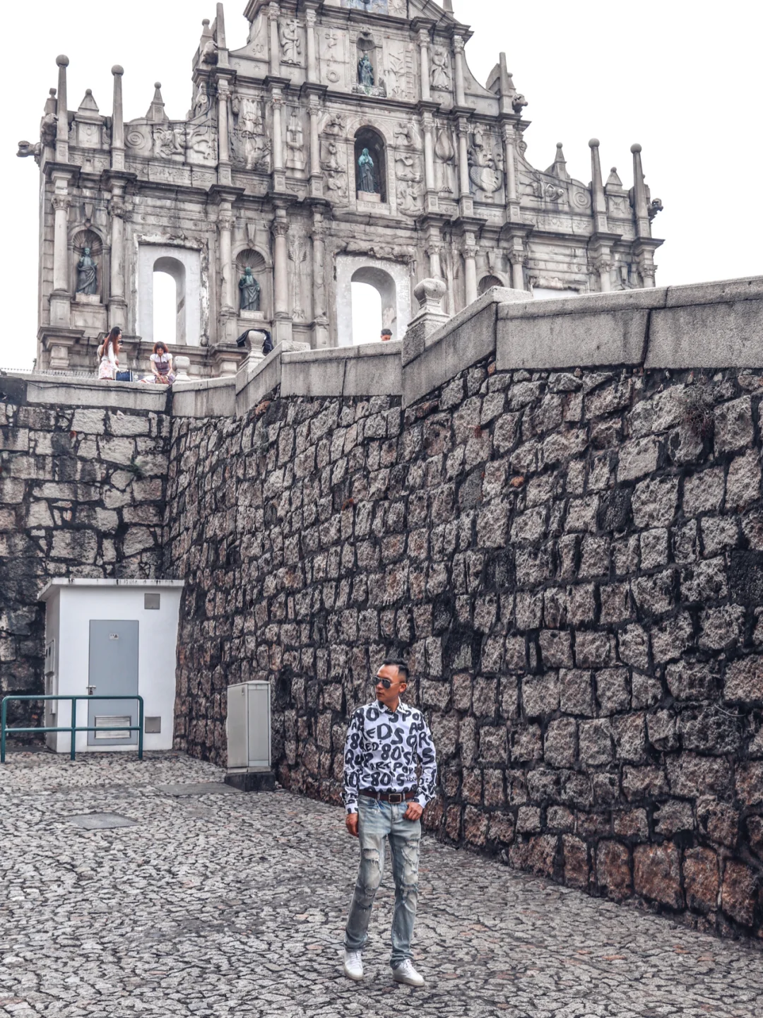 2⃣️面对大三巴牌坊左手边,有一条路一边是商铺,一边是石头墙,很适合拍照。以石头墙和大三巴作为背景,多走几次,总能拍出一张不一样的帅气照片。