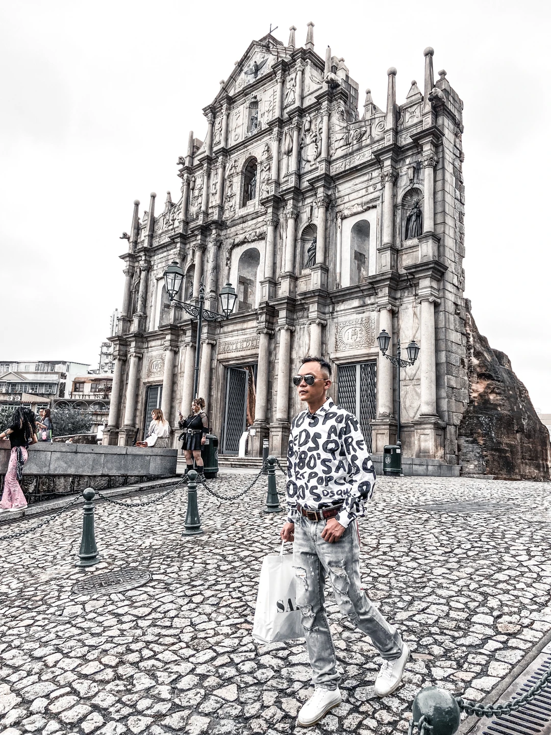 1⃣️澳门大三巴牌坊,必到打卡地。但我们可以拍出不一样的时尚照片。面对大三巴牌坊的右手边,有一条路可以走上去,快到牌坊下面可以拍到全景的位置,拿个购物袋营造出街拍抓拍的感觉。