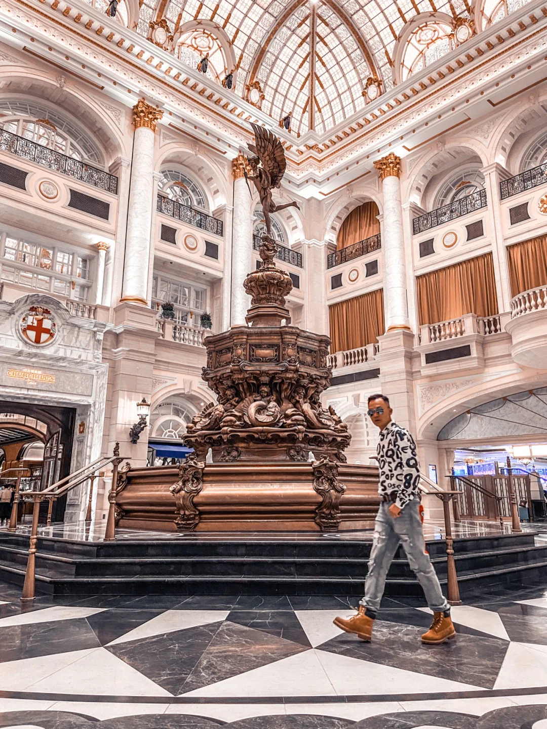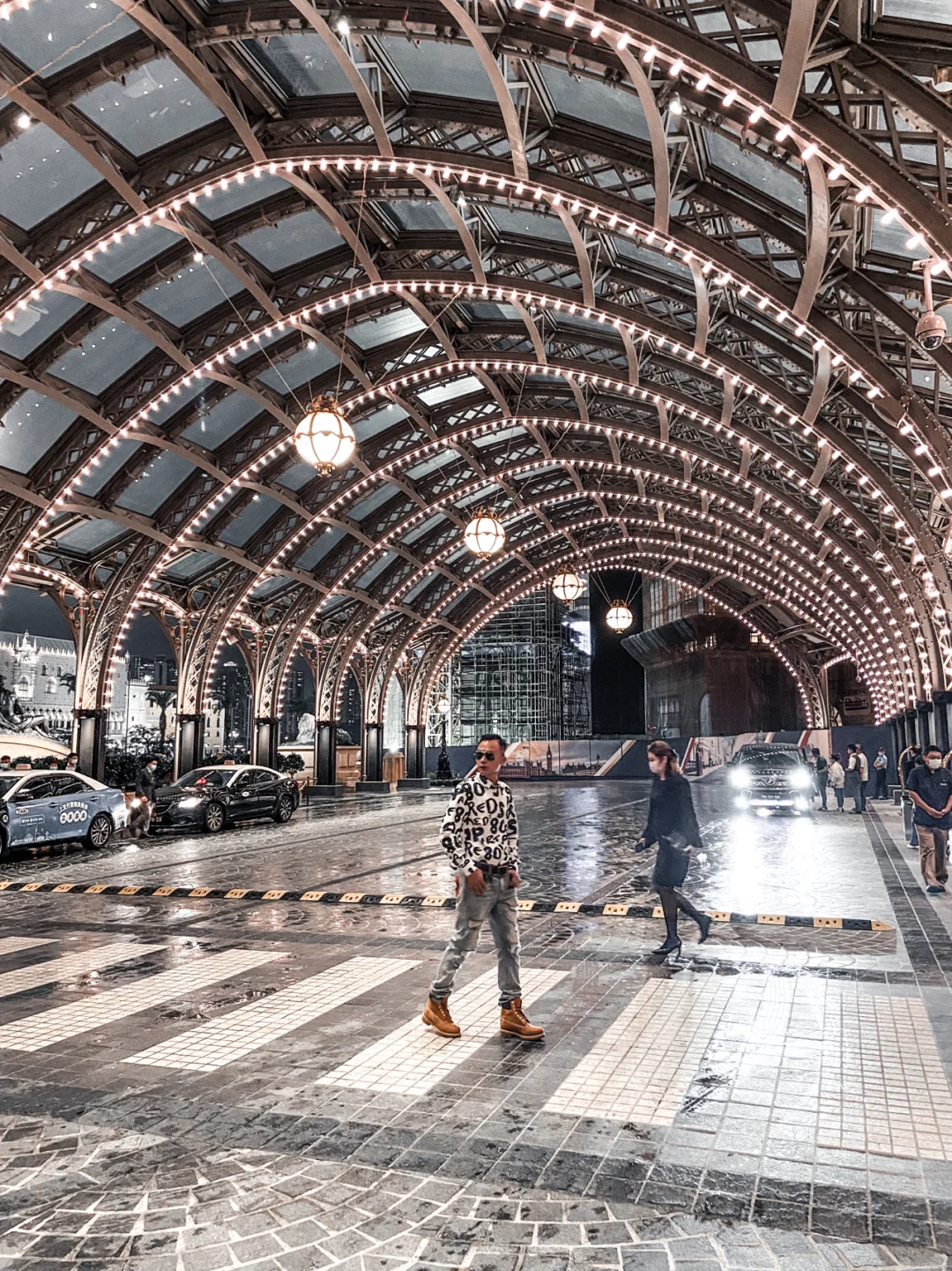 4⃣️伦敦人酒店的正门。这里简直太酷了,特别是晚上,灯光大映衬下,仿佛就是走在伦敦街头。因为有工作人员在指挥车辆,最好是手机构好图之后,再行走在斑马线上,随机抓拍。真的很出片!!!