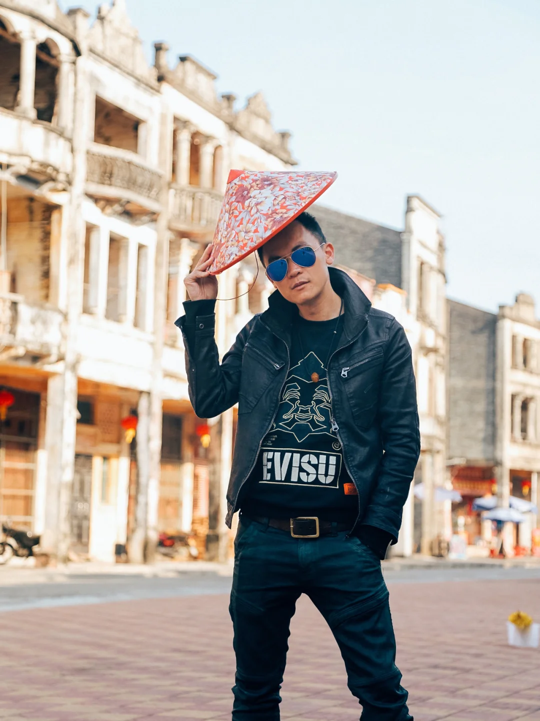 我跟一个阿姨借了当地的斗笠拍摄