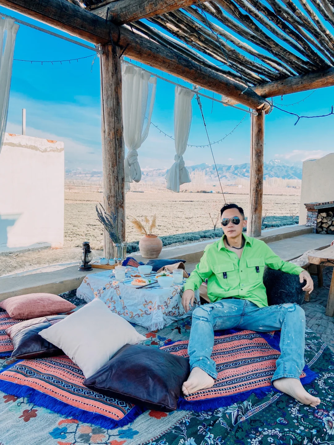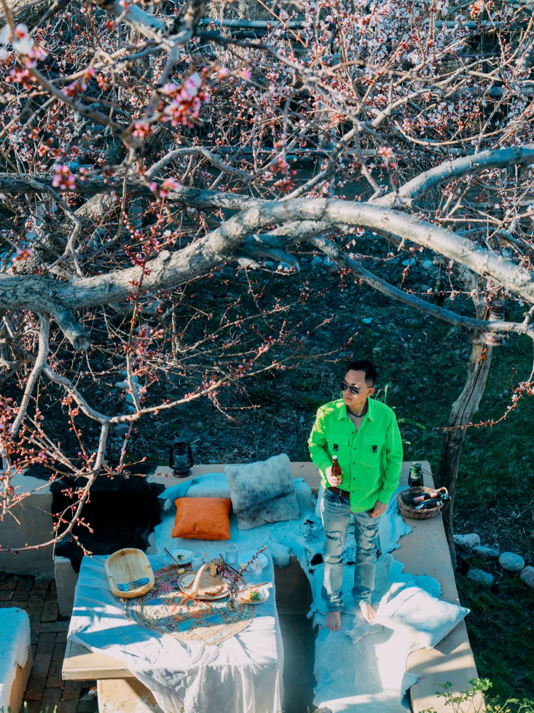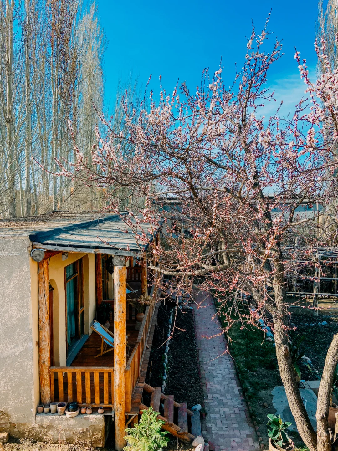 5⃣️入住客人可以走上屋顶去拍杏花,可以远眺雪山和薰衣草园。