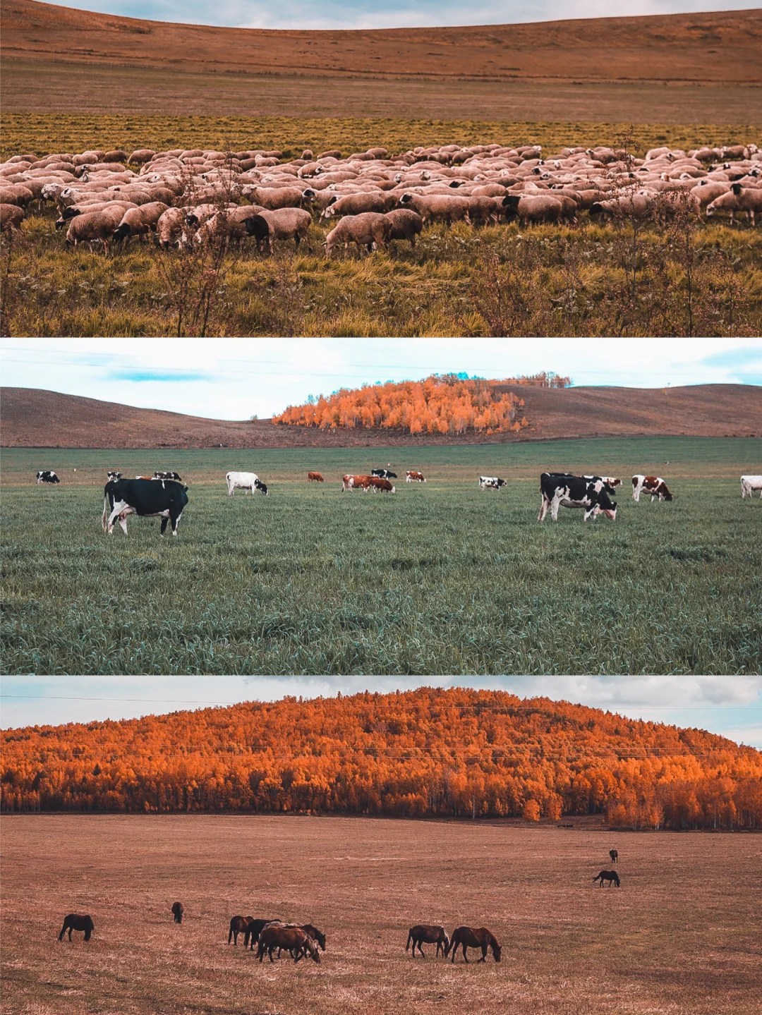 6、傍晚时分,会遇见放牧人赶牛羊的场景,那就赶紧拿出相机拍照吧,这才是内蒙古风吹草低见牛羊的场景。