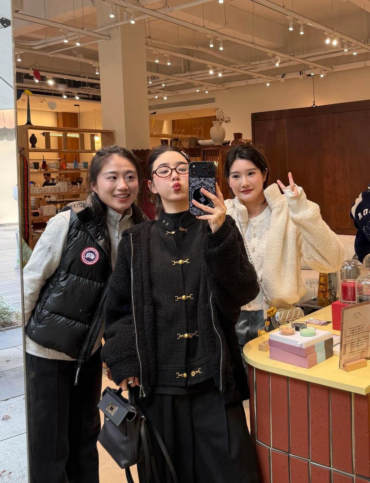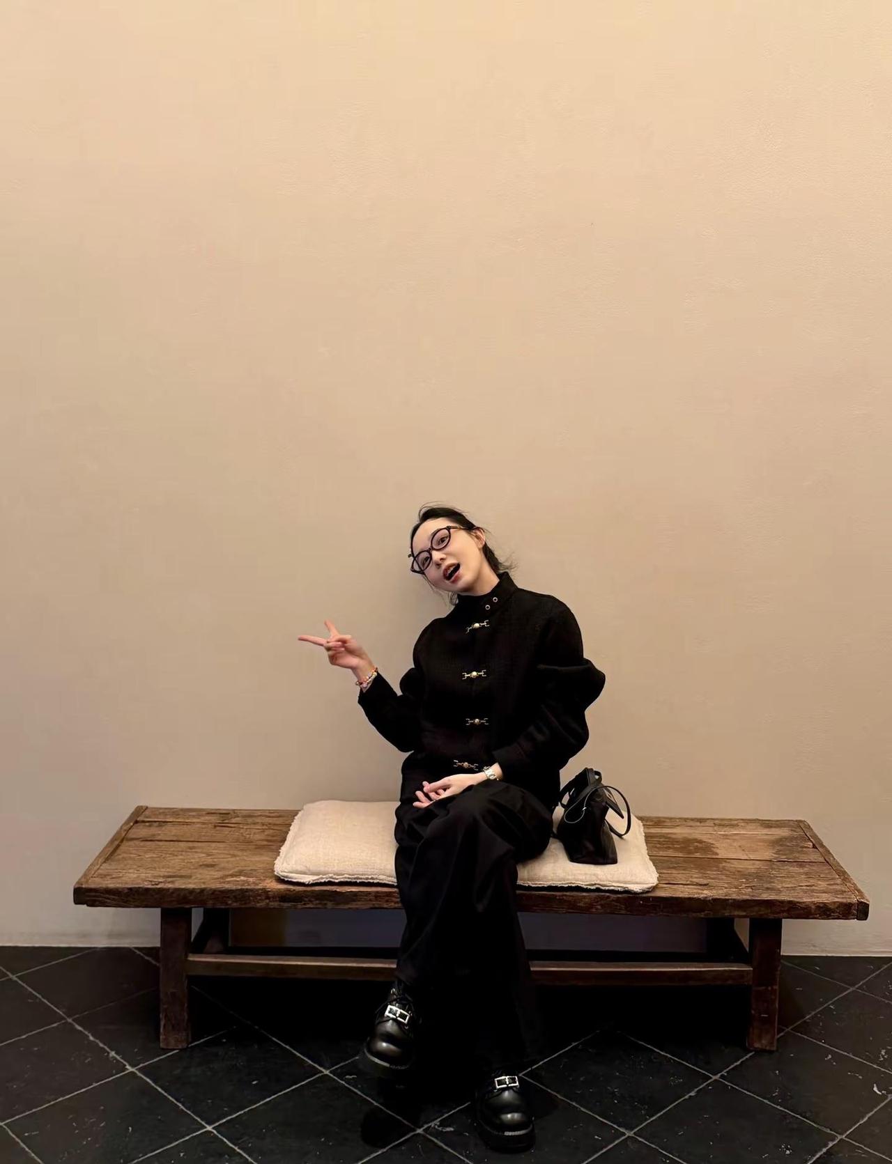 笑口常开。好久没穿粗花呢唐装啦 加上摇粒绒 超级暖 穿搭 teamwang